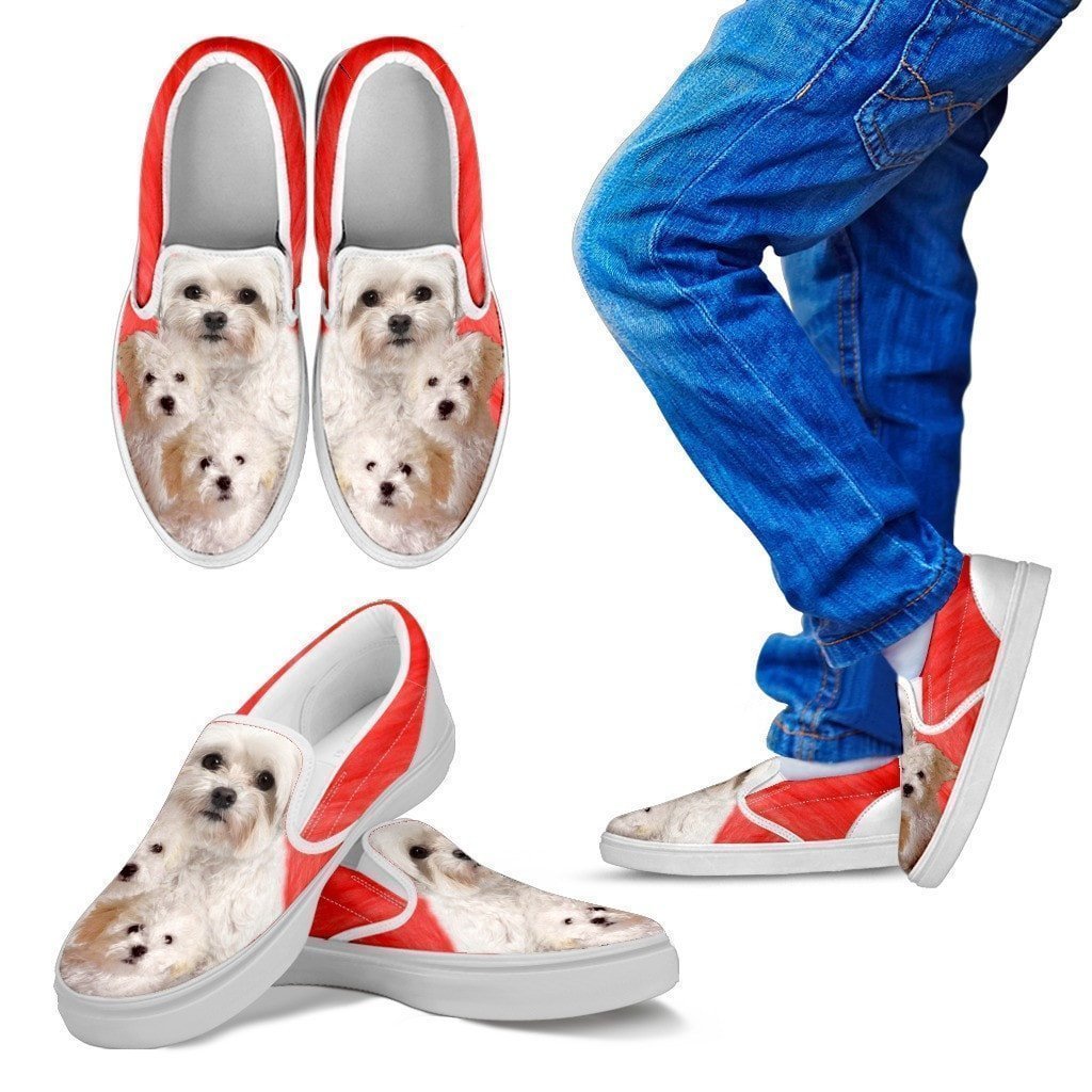 Bolognese Dog Print Slip Ons For Kids- Express Shipping