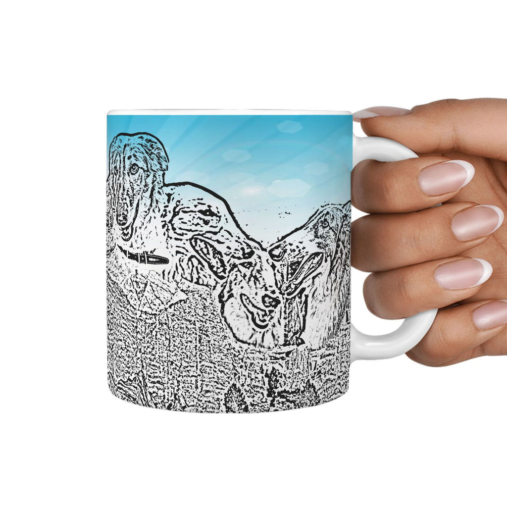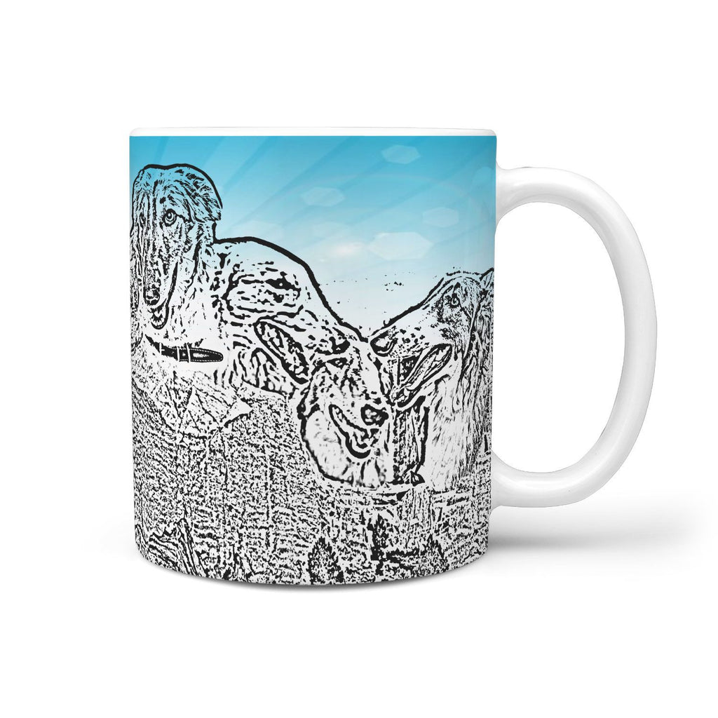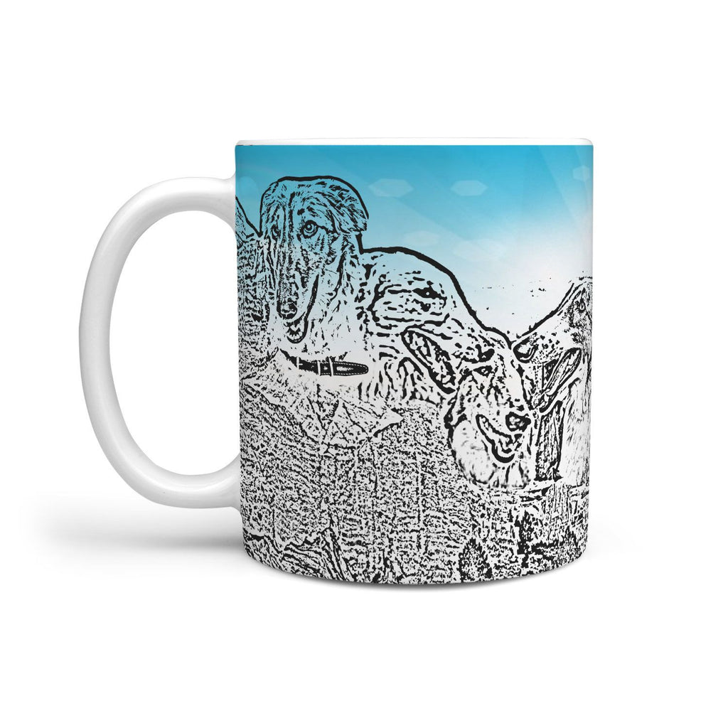 Borzoi Dog Mount Rushmore Art Print 360 White Mug