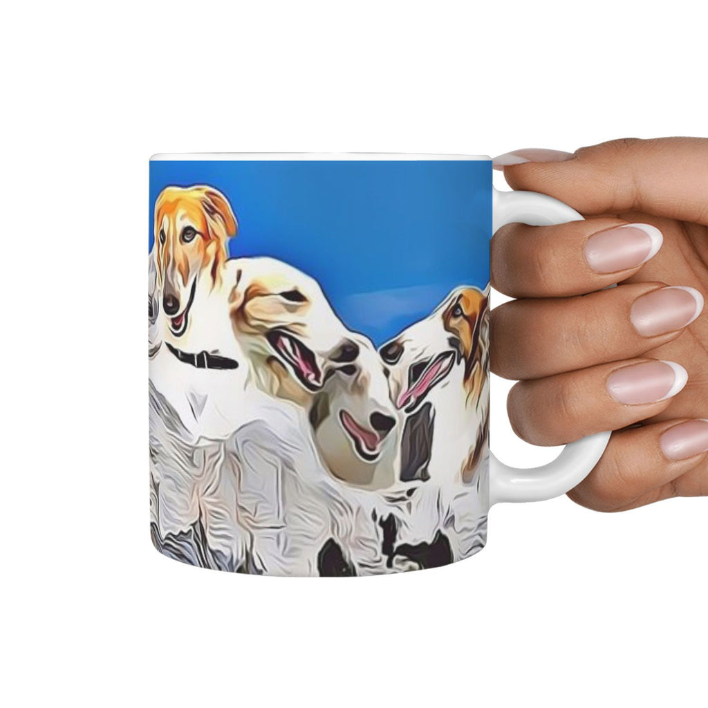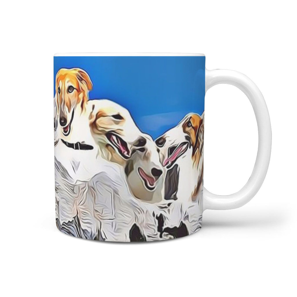 Borzoi Dog Mount Rushmore Print 360 White Mug