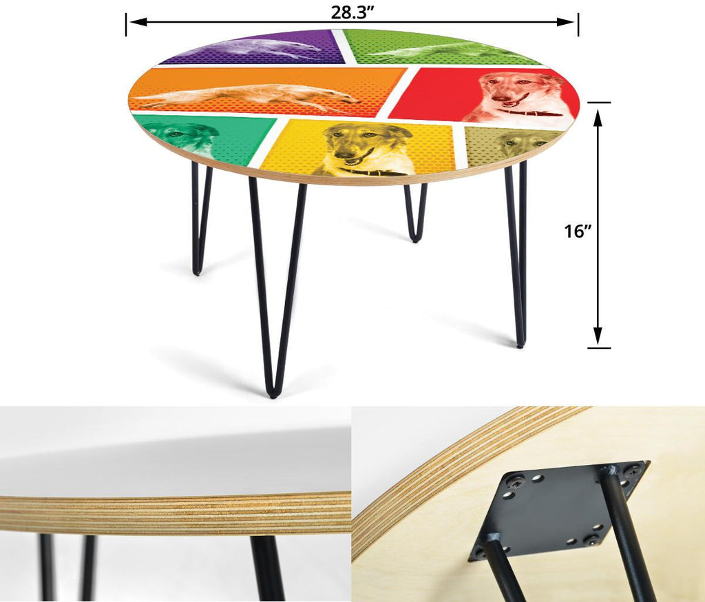 • Tabletop is constructed with premium birch wood and coated with a durable vinyl graphic that is laminated with a matte finish.