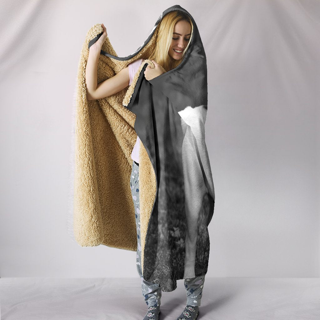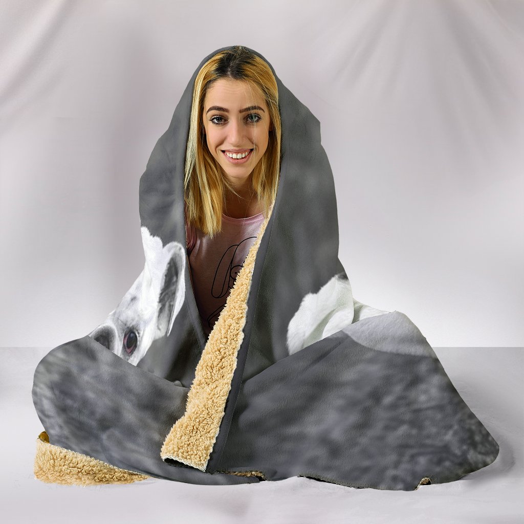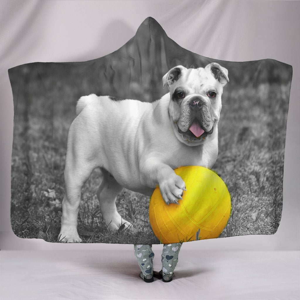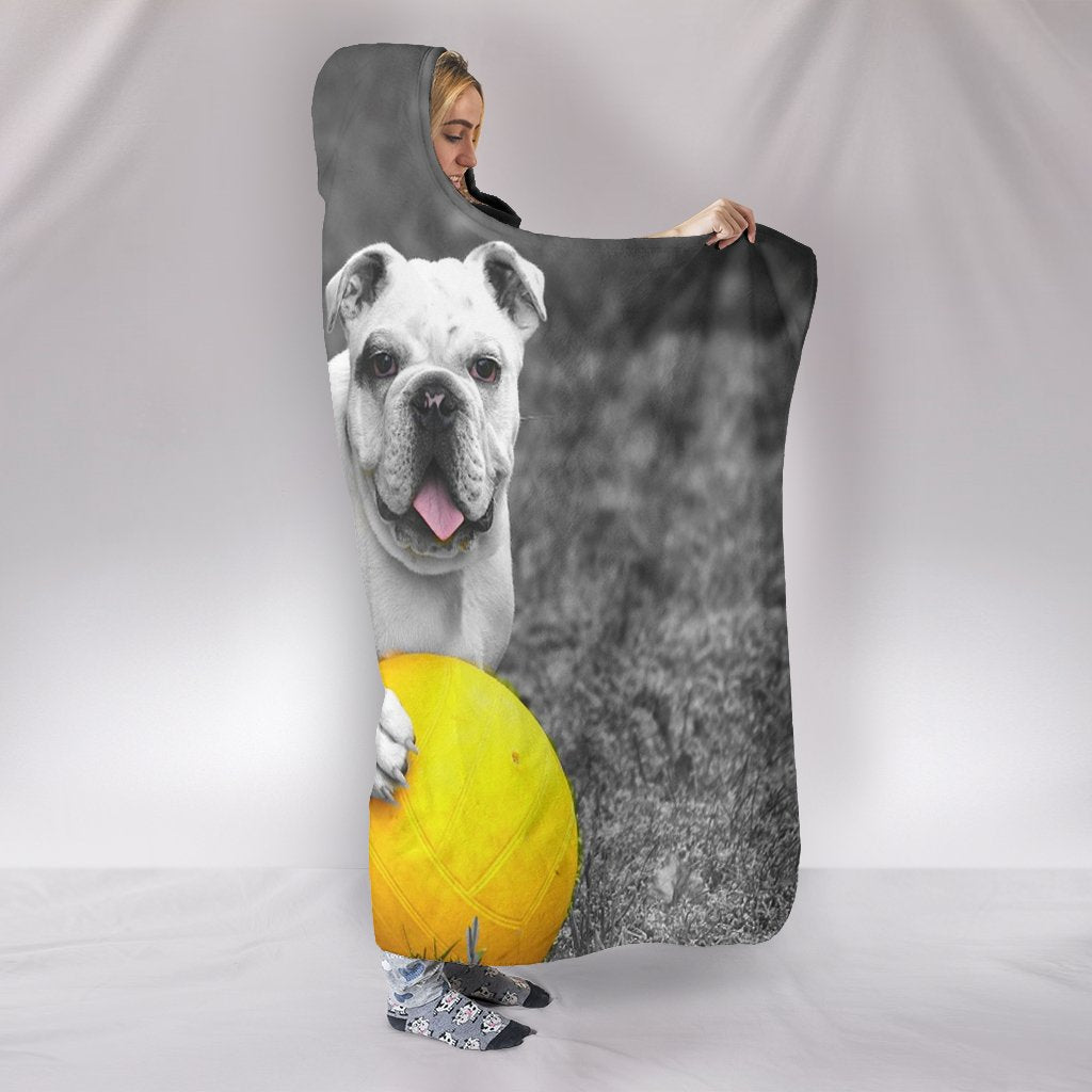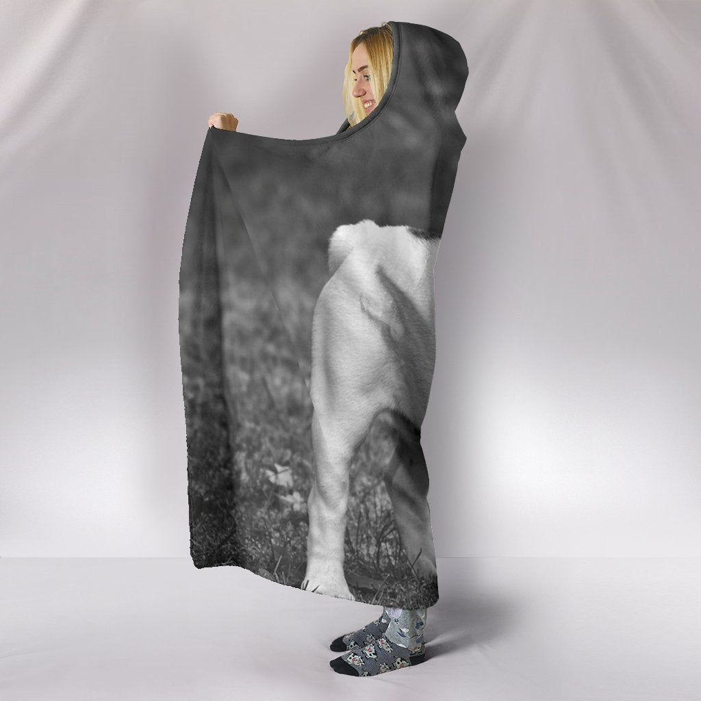 Bulldog Black And White Print Hooded Blanket