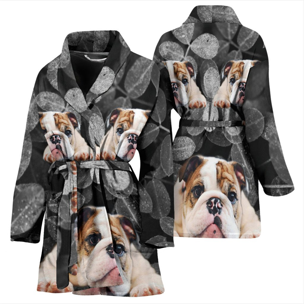Cute Bulldog Print Women's Bath Robe-Free Shipping