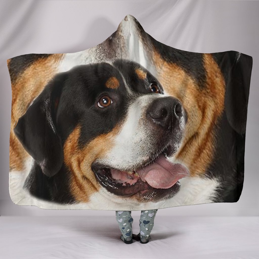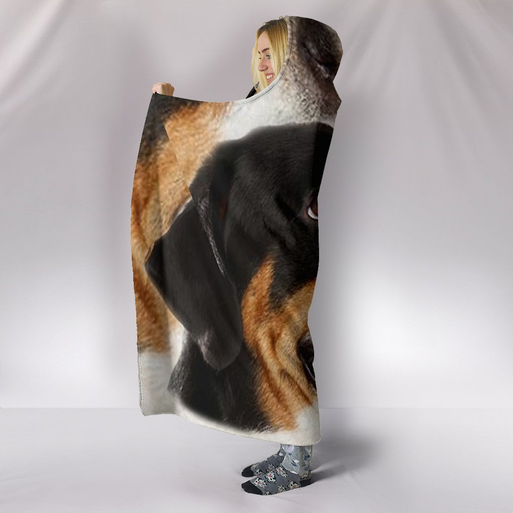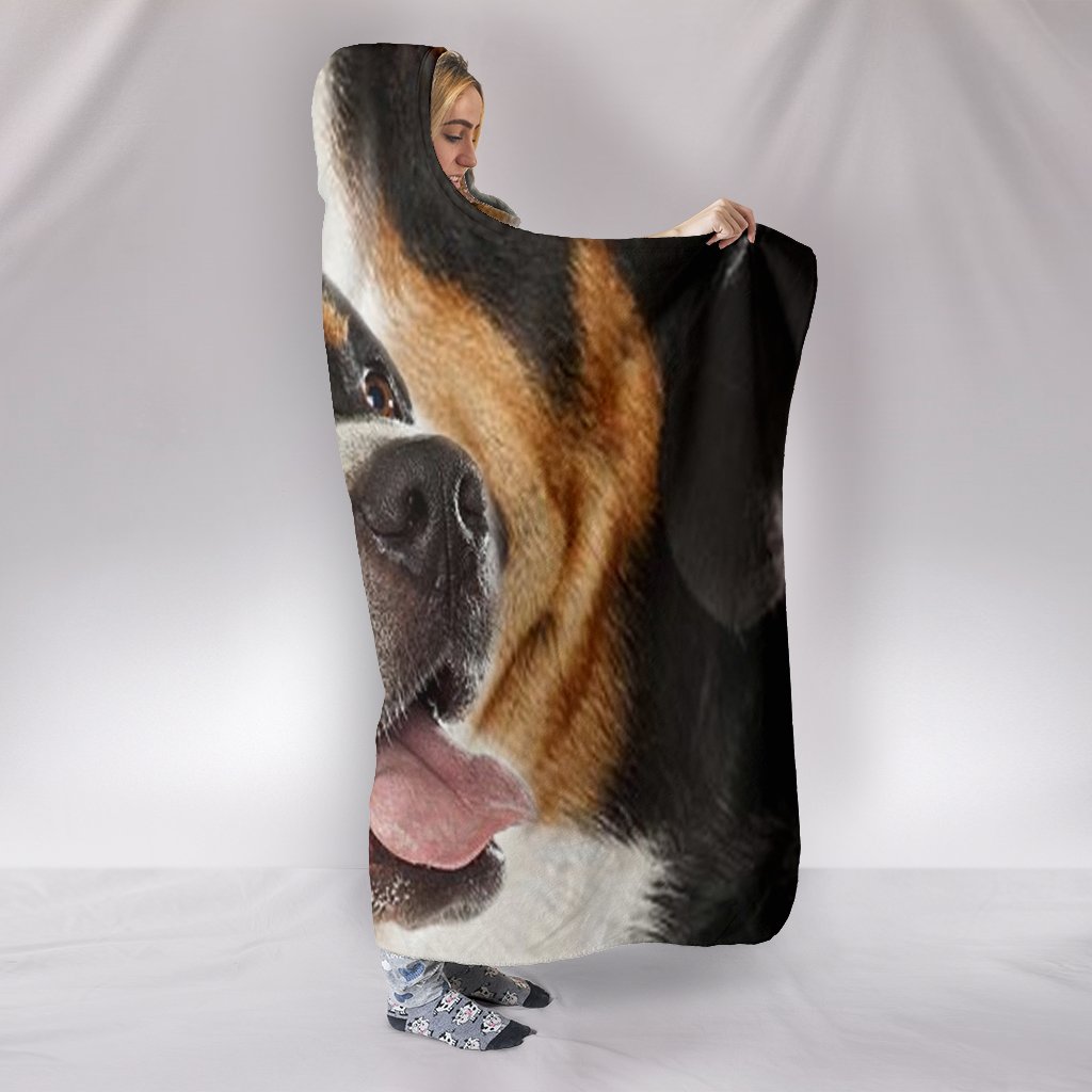 Cute Face Greater Swiss Mountain Dog Print Hooded Blanket