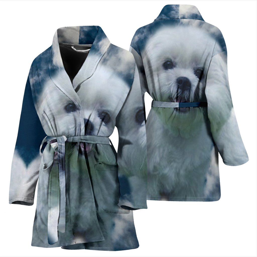 Cute Maltese Dog Print Women's Bath Robe-Free Shipping