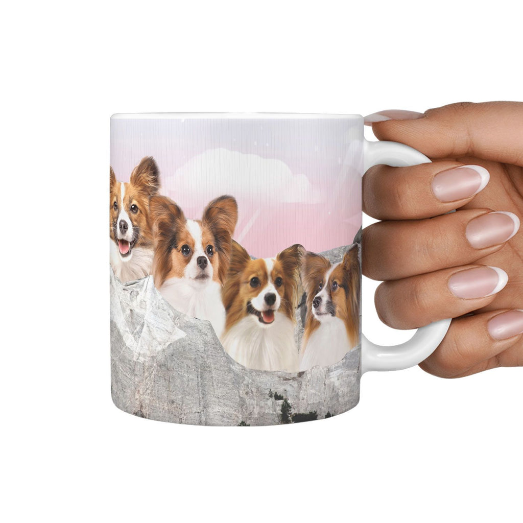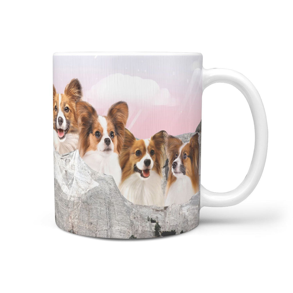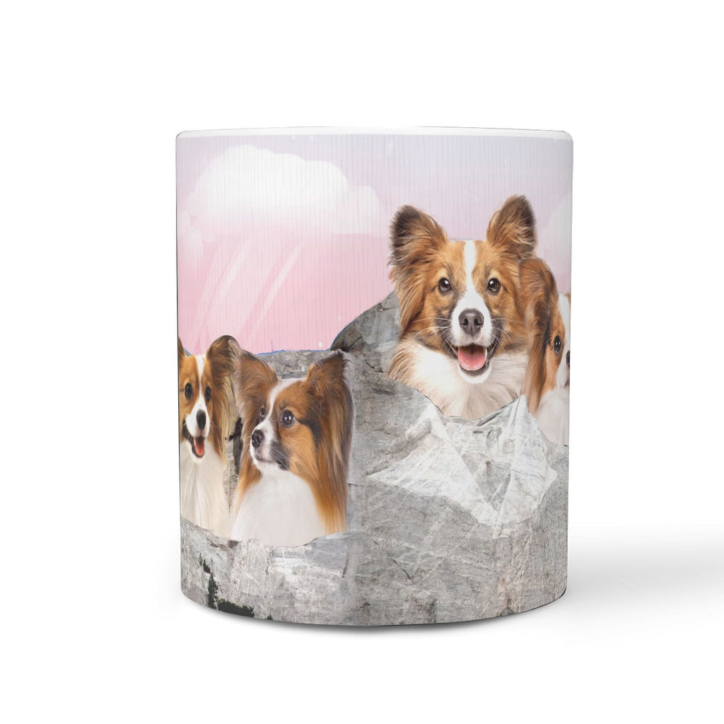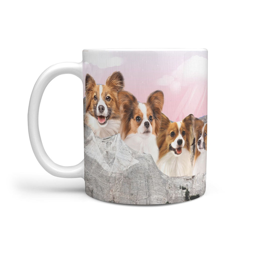 Cute Papillon Dog On Mount Rushmore Print 360 Mug