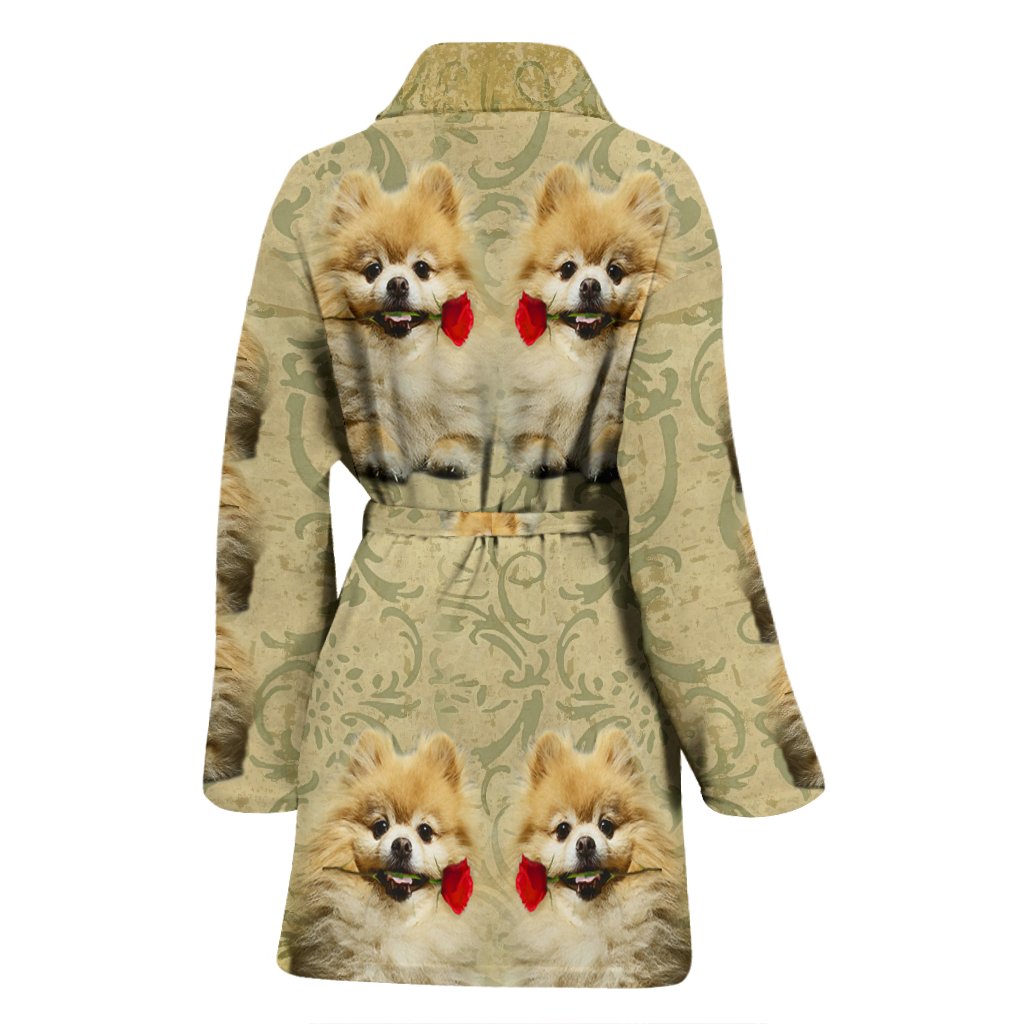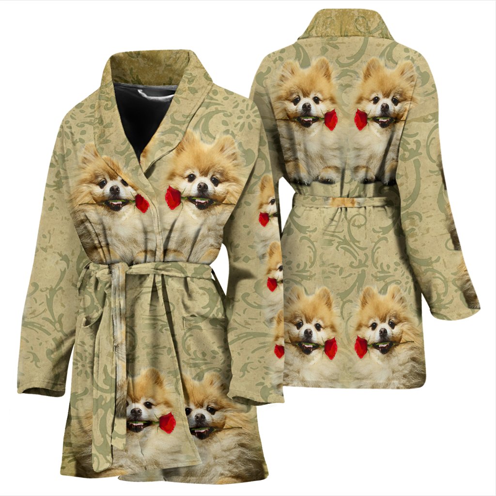 Cute Pomeranian Dog Print Women's Bath Robe-Free Shipping