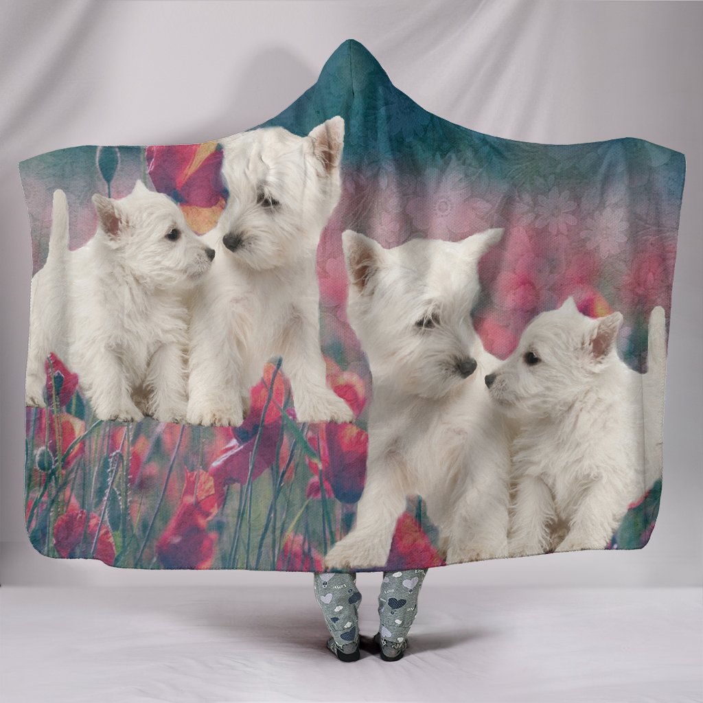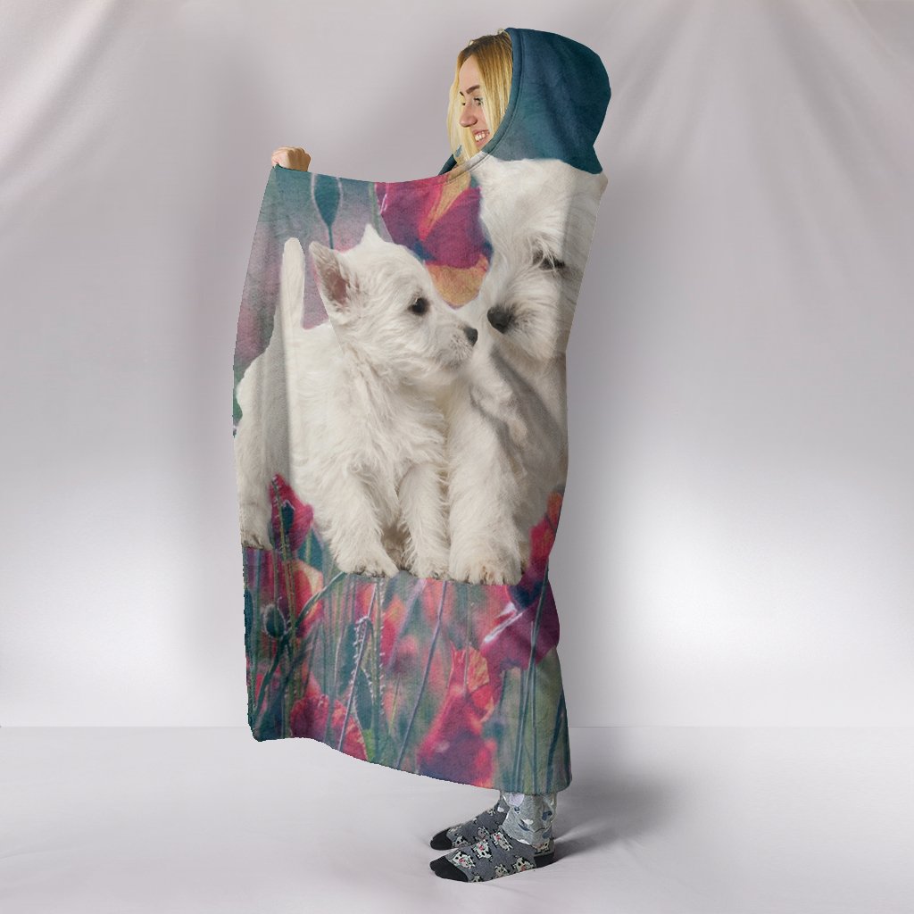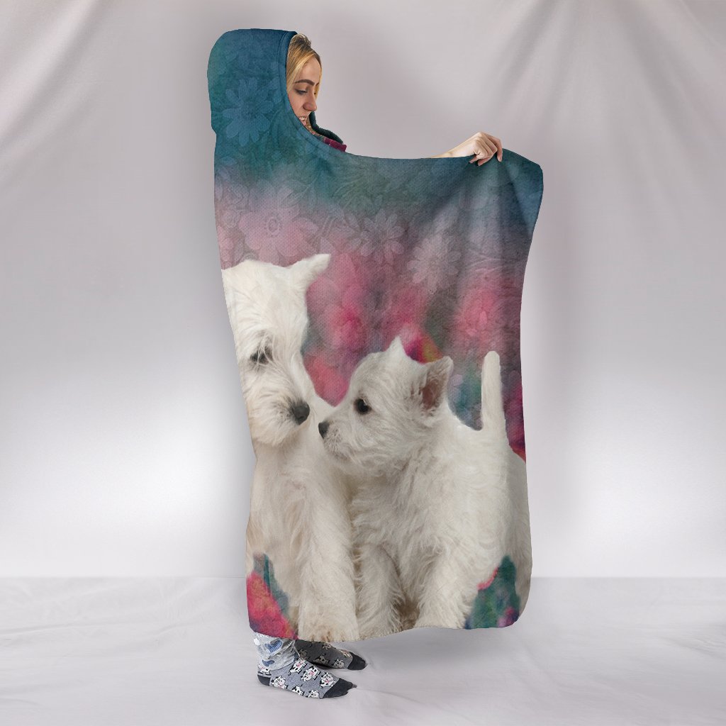 Cute Westie Dog Print Hooded Blanket