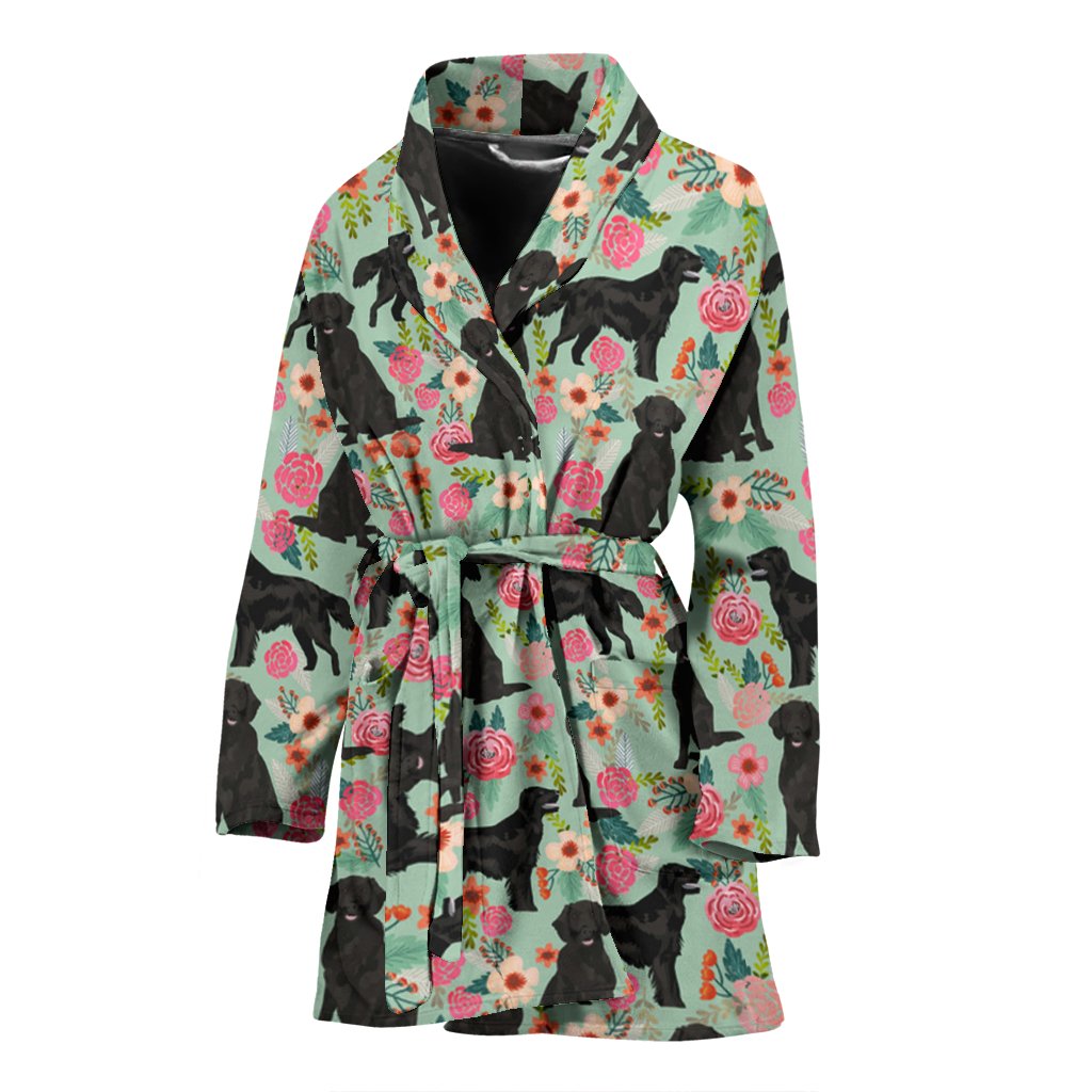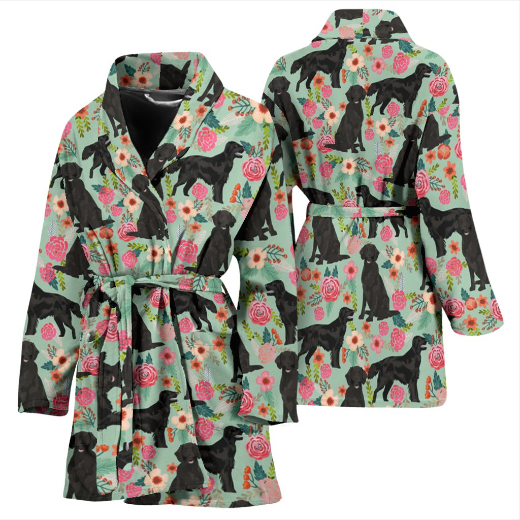 Flat-Coated Retriever Dog Floral Print Women's Bath Robe-Free Shipping
