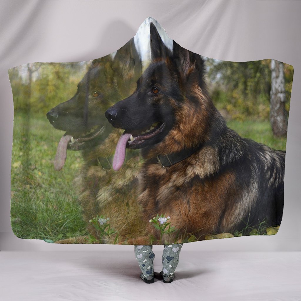 German Shepherd Dog Print Hooded Blanket