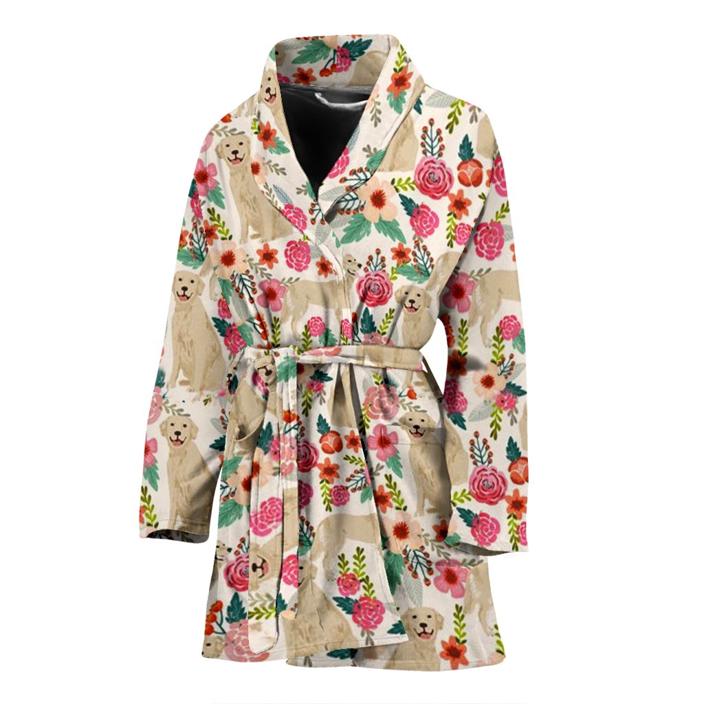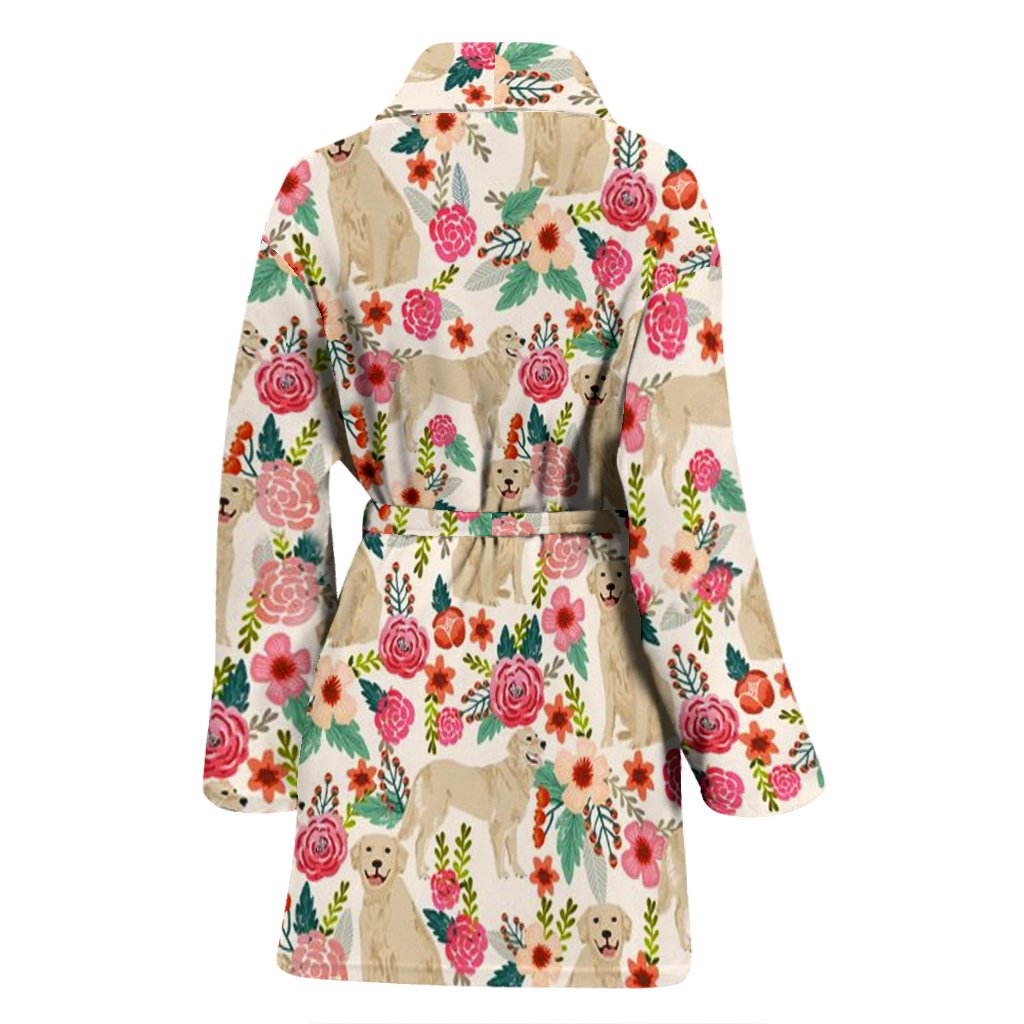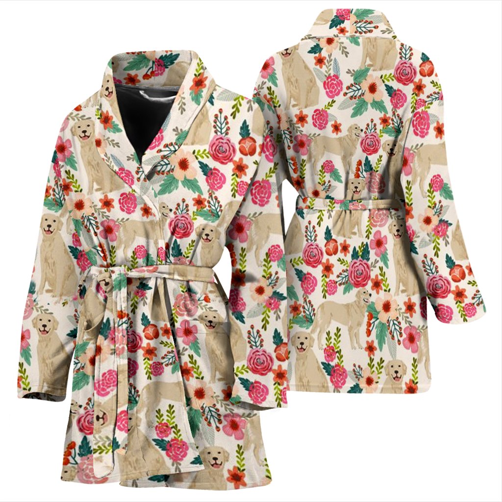 Golden Retriever Dog Floral Print Women's Bath Robe-Free Shipping
