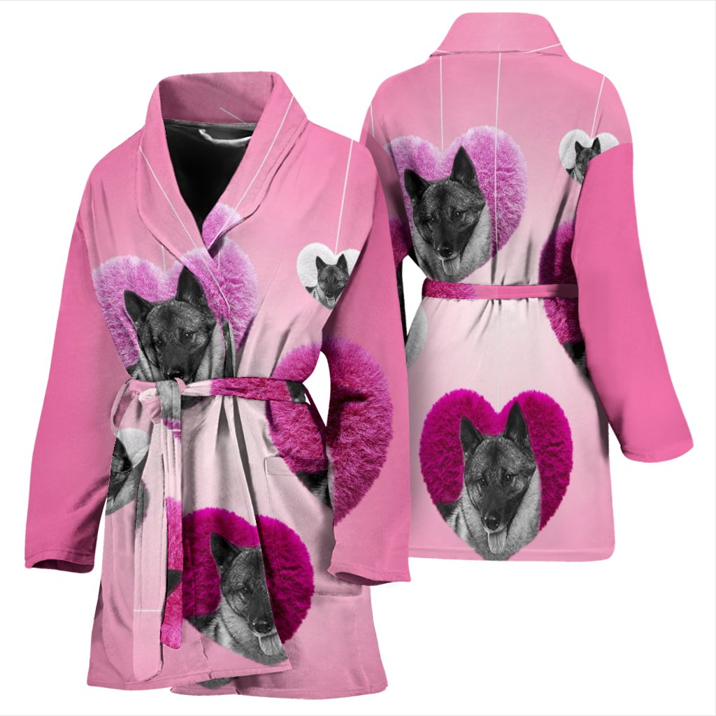 Norwegian Elkhound dog Print Women's Bath Robe-Free Shipping