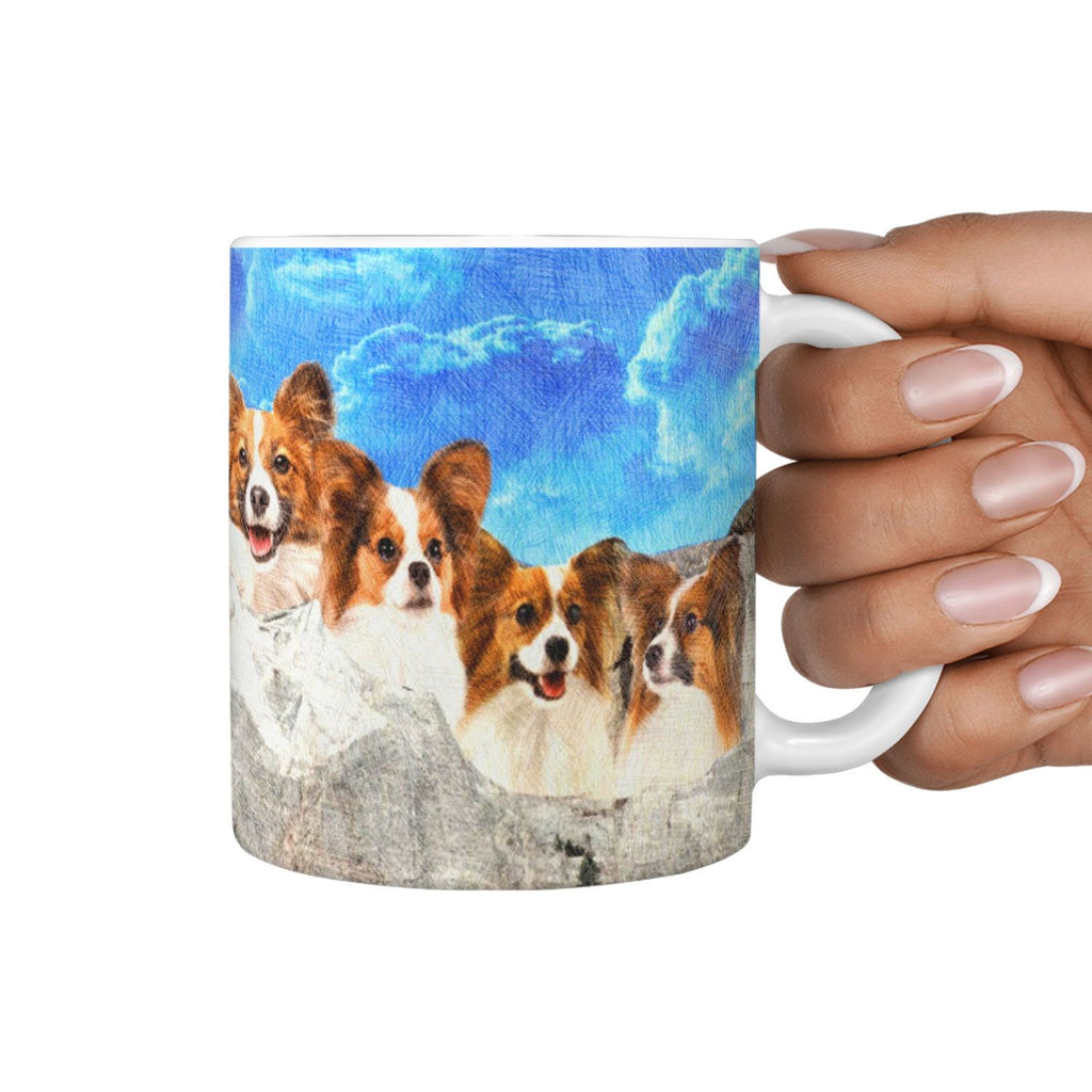 Papillon Dog Art On Mount Rushmore Print 360 Mug