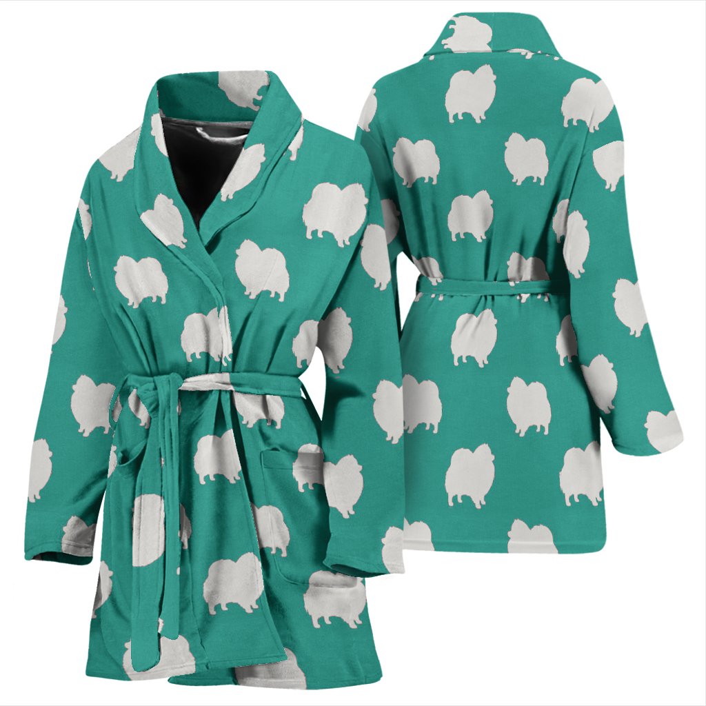 Pomeranian Dog Pattern Print Women's Bath Robe-Free Shipping