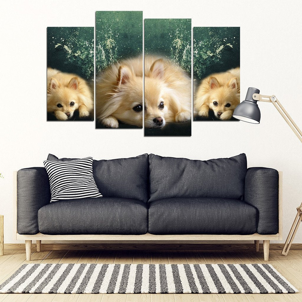 Pomeranian Dog Print- 5 Piece Framed Canvas- Free Shipping