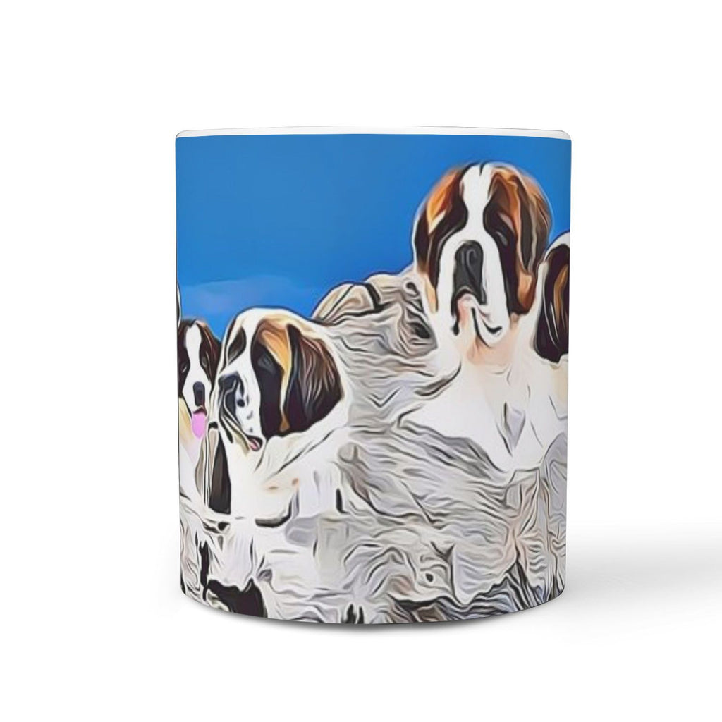 Saint Bernard Dog Mount Rushmore Print 360 White Mug
