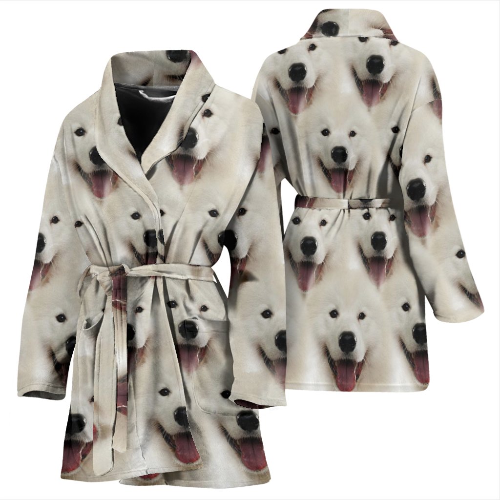 Samoyed Dog Print Women's Bath Robe-Free Shipping
