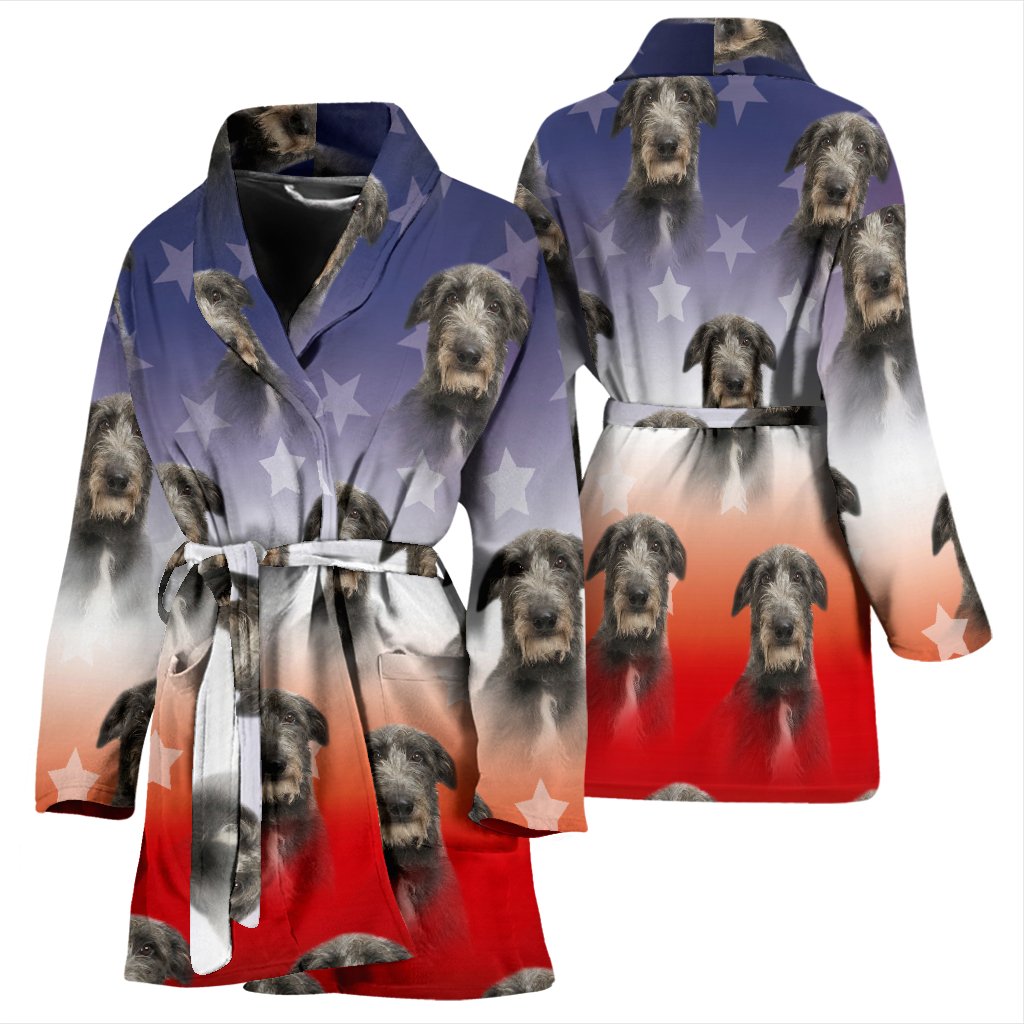 Scottish Deerhound Dog Print Women's Bath Robe-Free Shipping