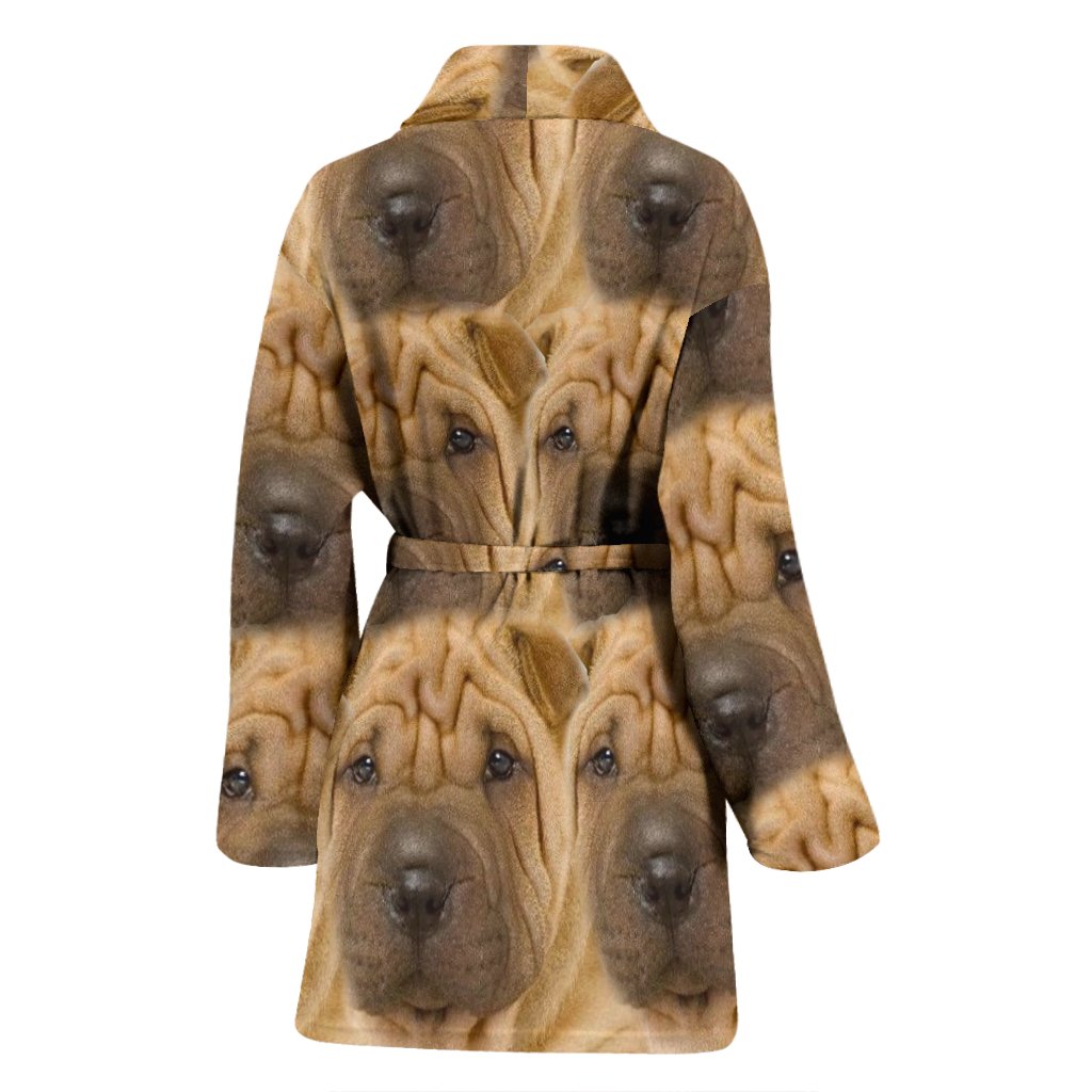 Shar Pei Dog Print Women's Bath Robe-Free Shipping