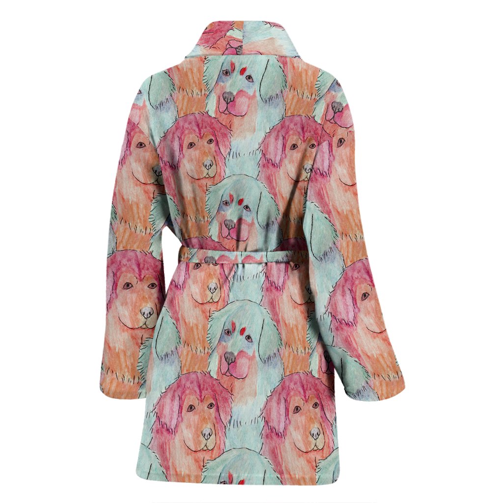 Tibetan Mastiff Dog Color Art Print Women's Bath Robe-Free Shipping