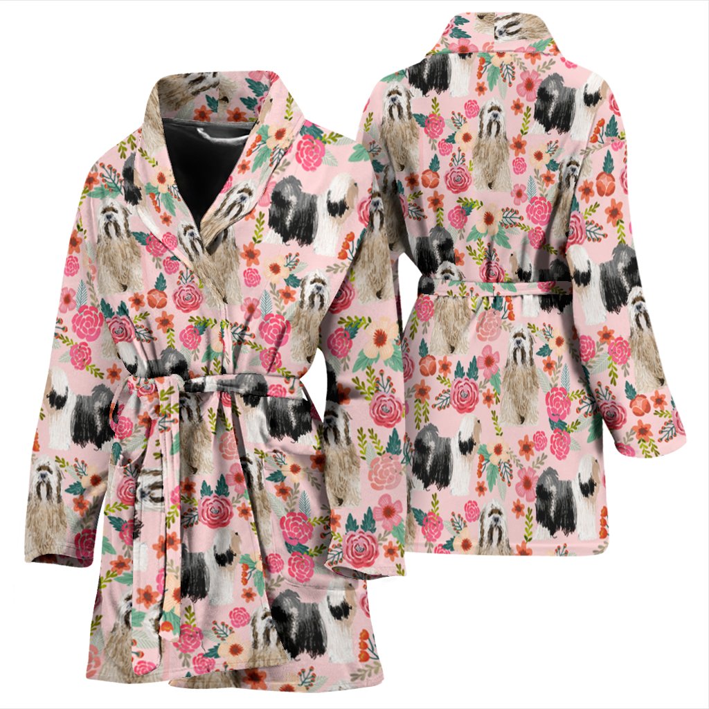 Tibetan Terrier Dog Floral Print Women's Bath Robe-Free Shipping