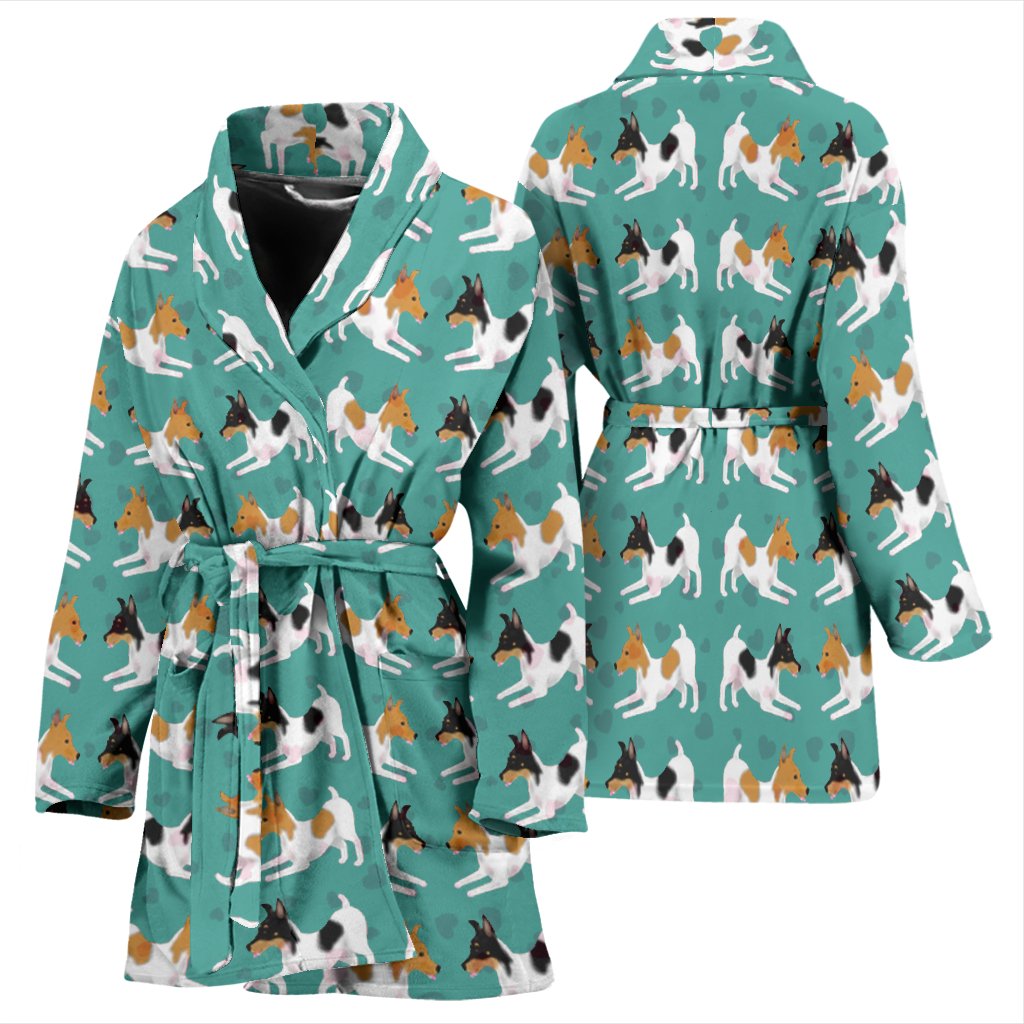 Toy Fox Terrier Dog Hearts Pattern Print Women's Bath Robe-Free Shipping