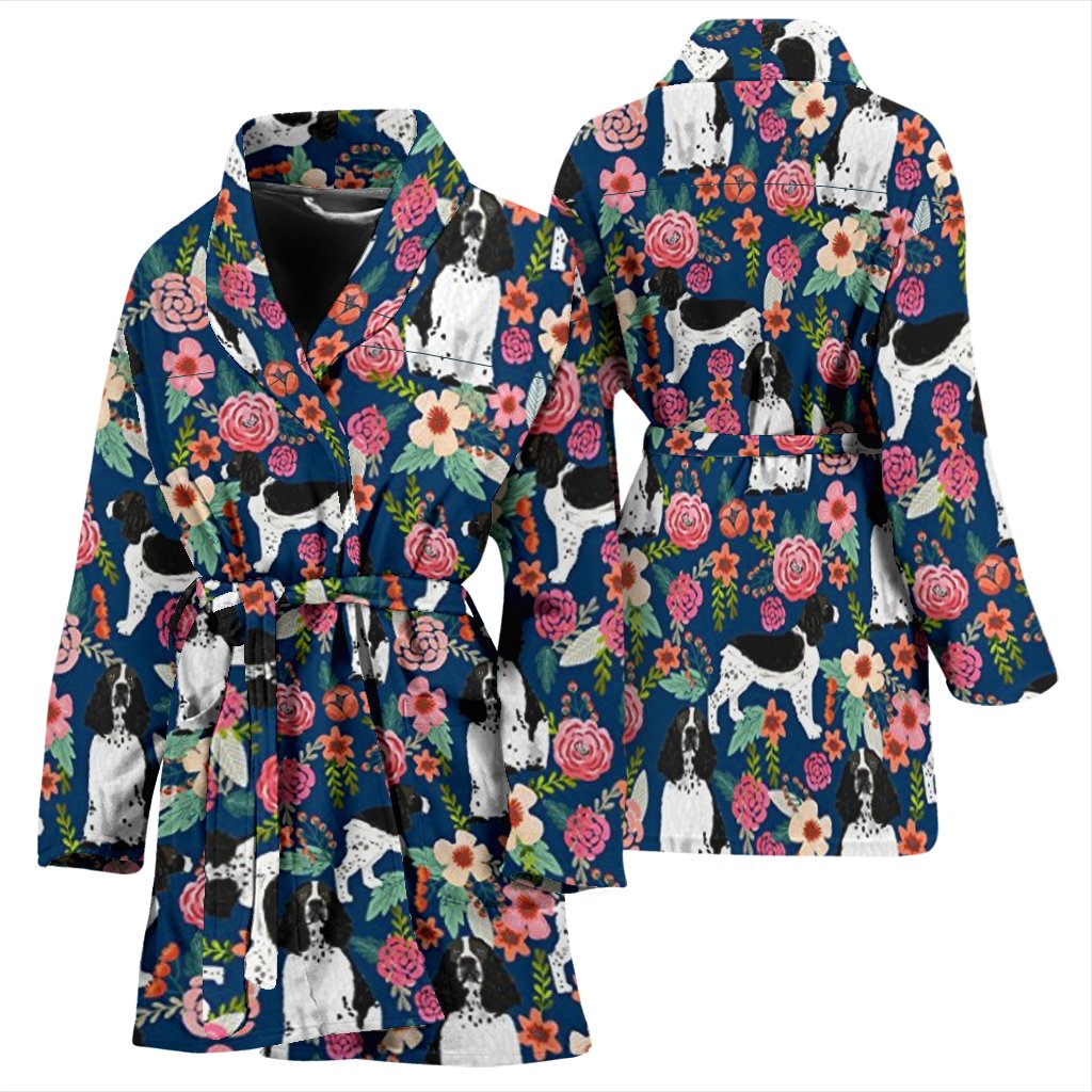 English Springer Spaniels Dog Floral Print Women's Bath Robe-Free Shipping