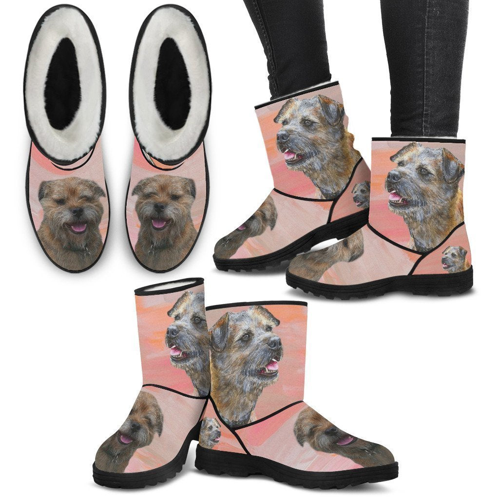Border Terrier Print Faux Fur Boots For Women-Free Shipping-Paww-Printz-Merchandise