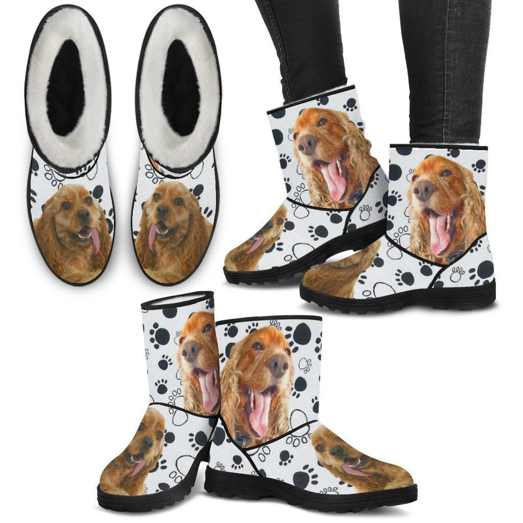 Cocker Spaniel Print Faux Fur Boots For Women-Free Shipping-Paww-Printz-Merchandise