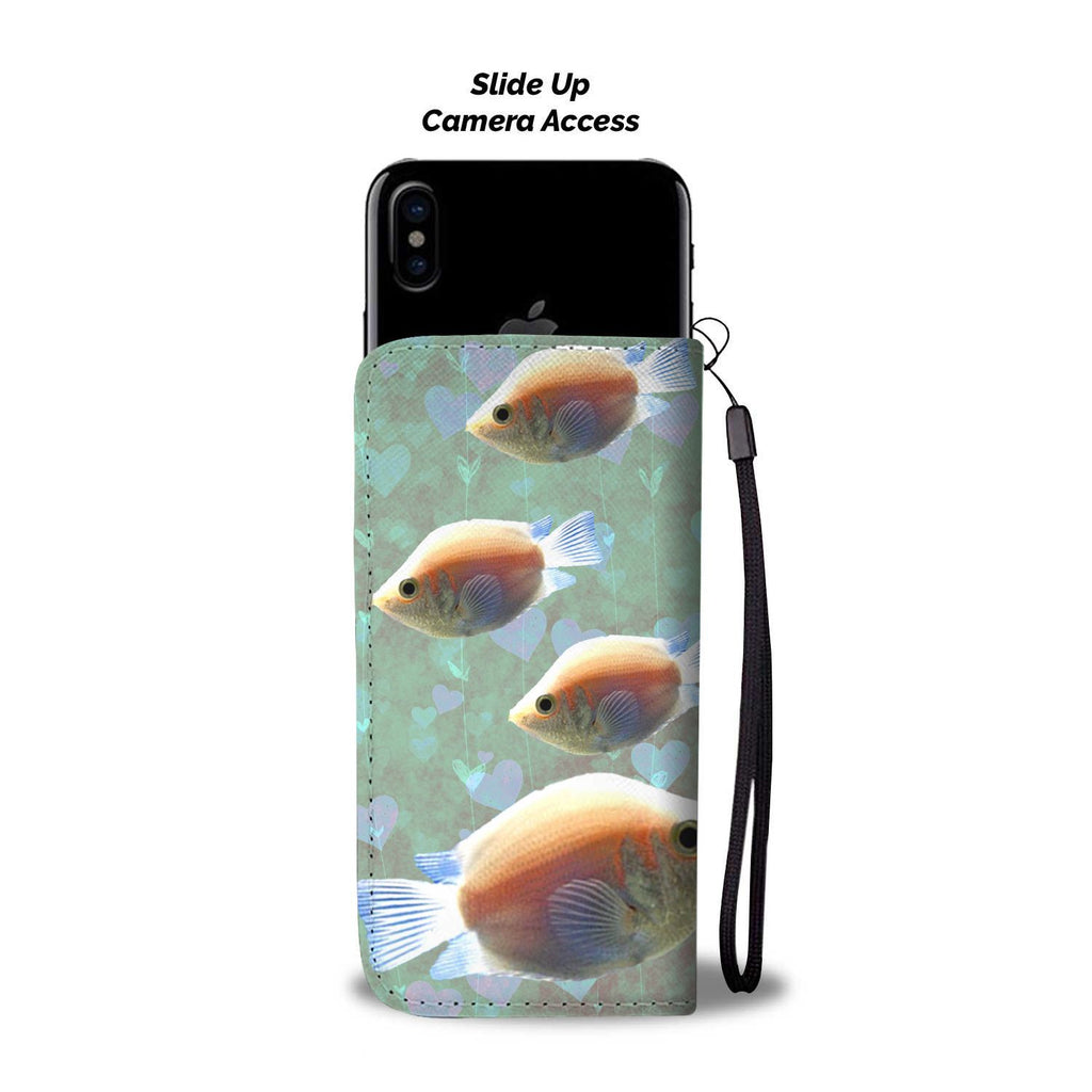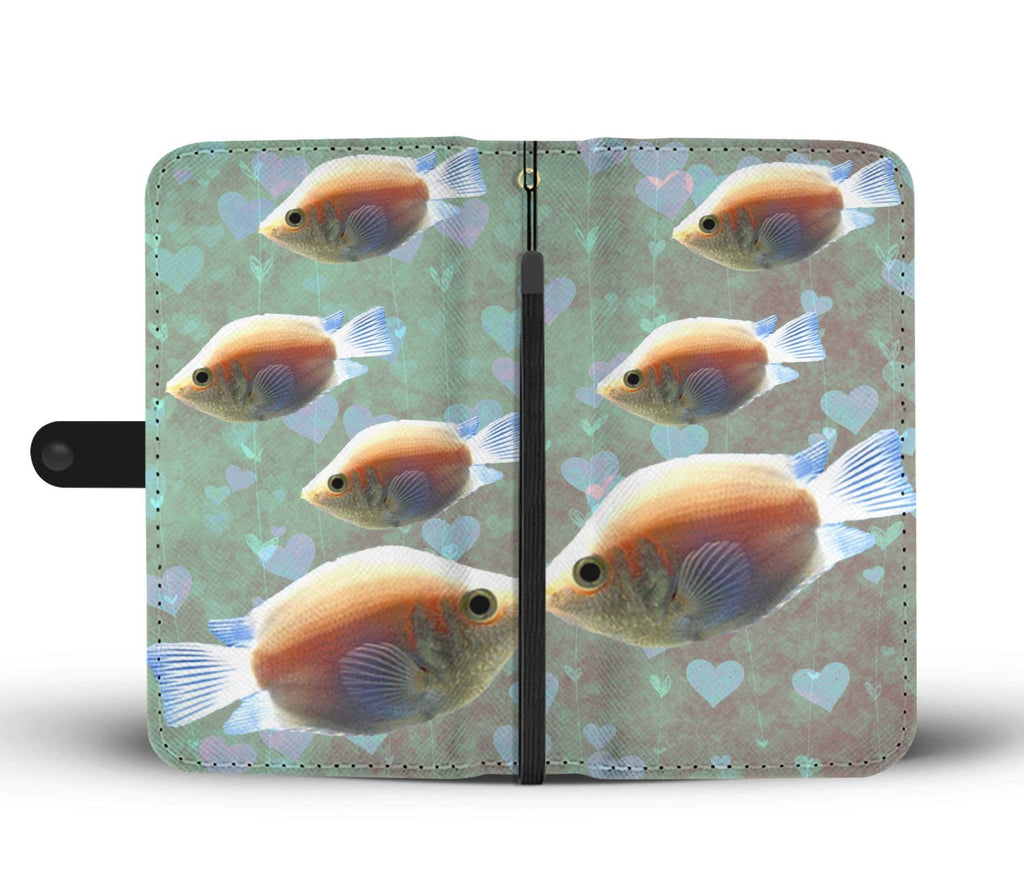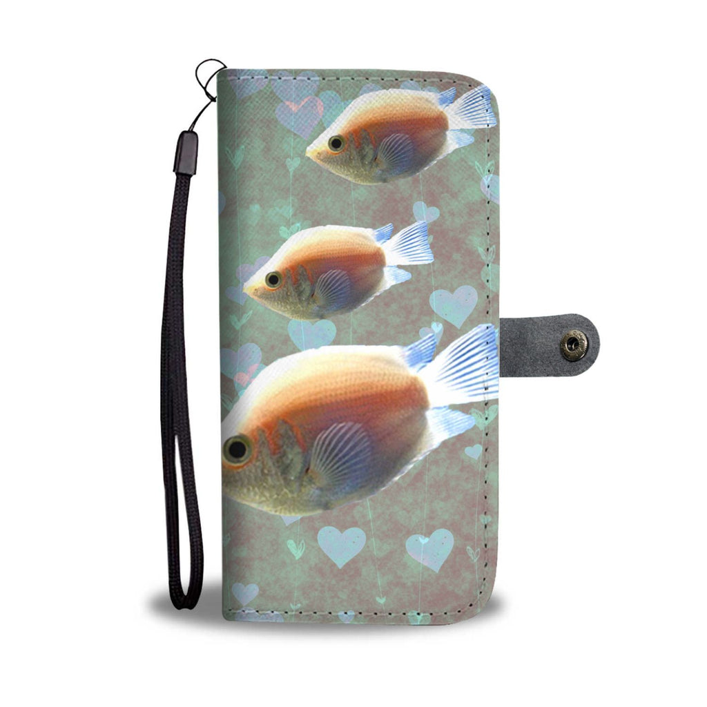 Lovely Kissing Gourami Fish On Hearts Print Wallet Case-Free Shipping