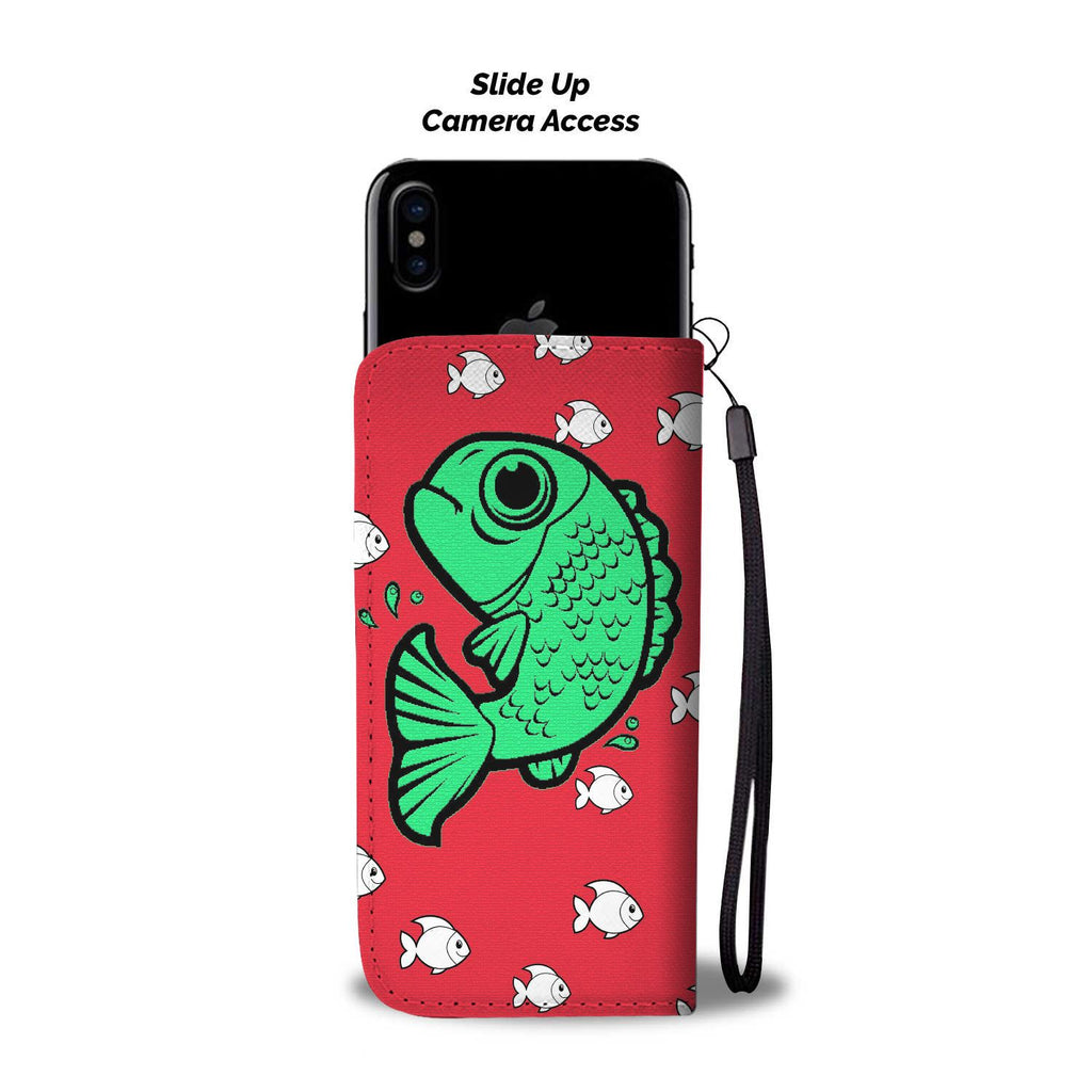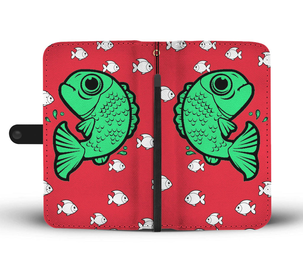 Playing Fish on Red Print Wallet Case-Free Shipping