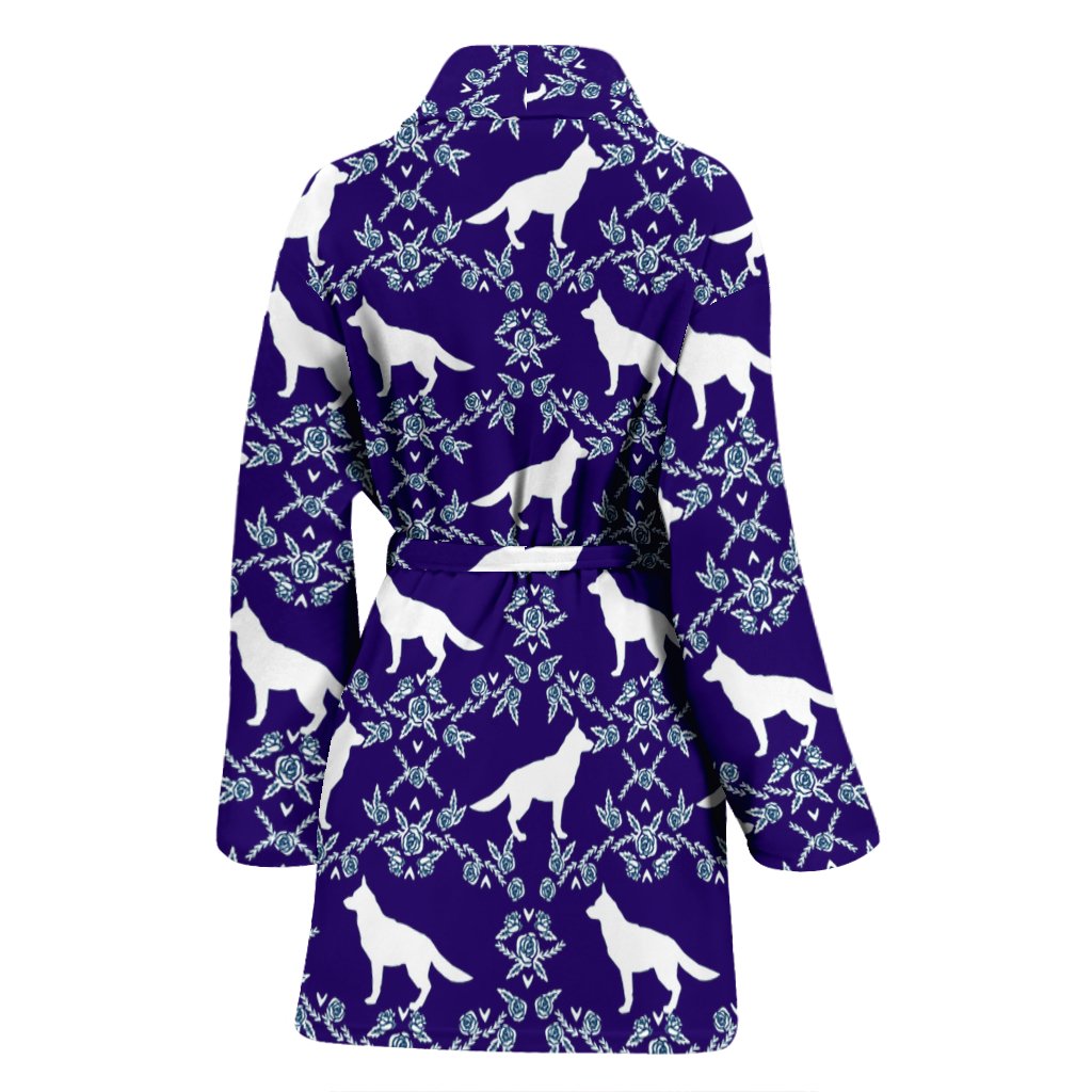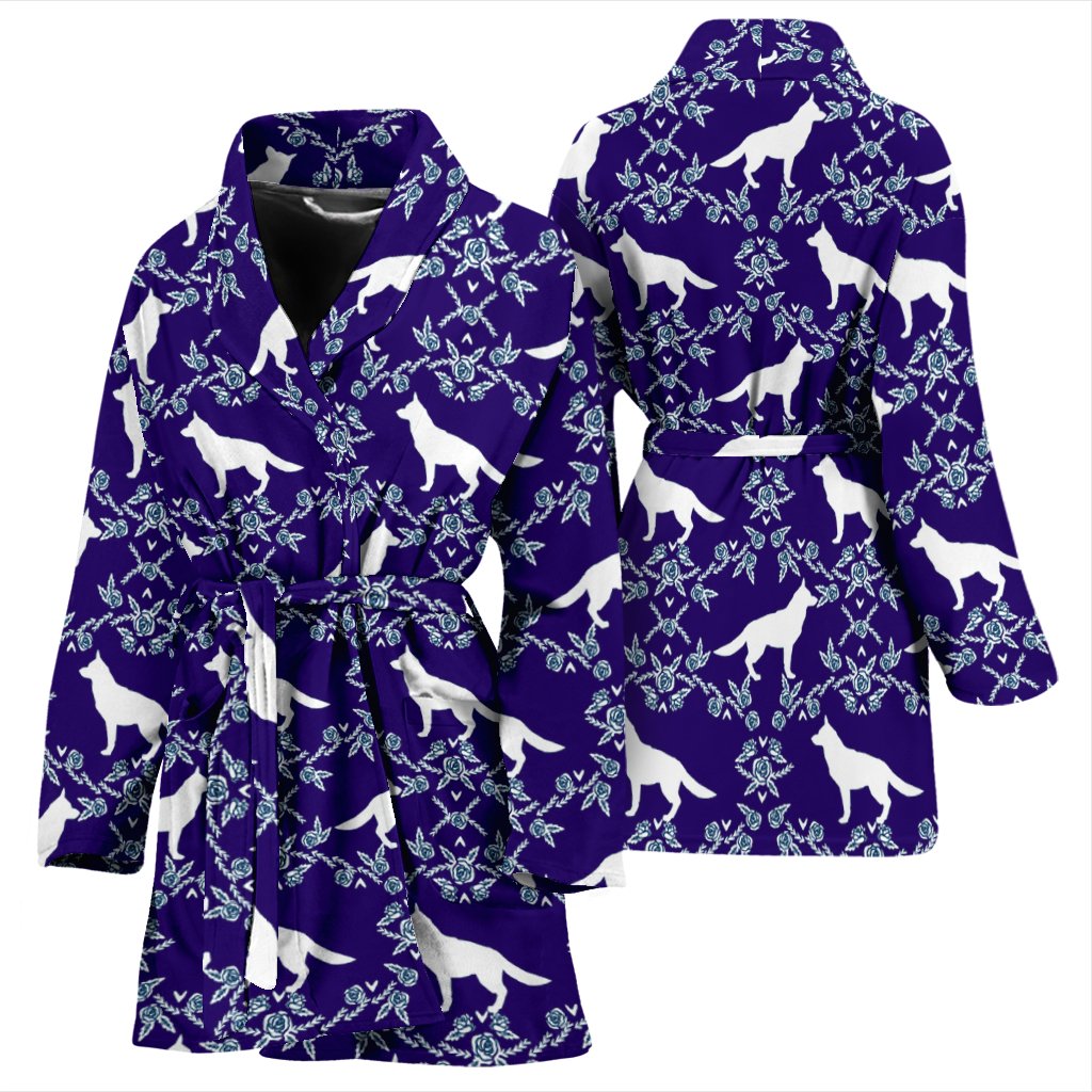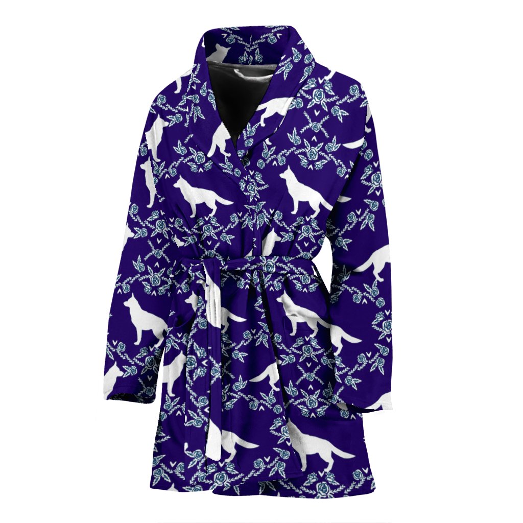 German Shepherd Dog Floral Print Women's Bath Robe-Free Shipping