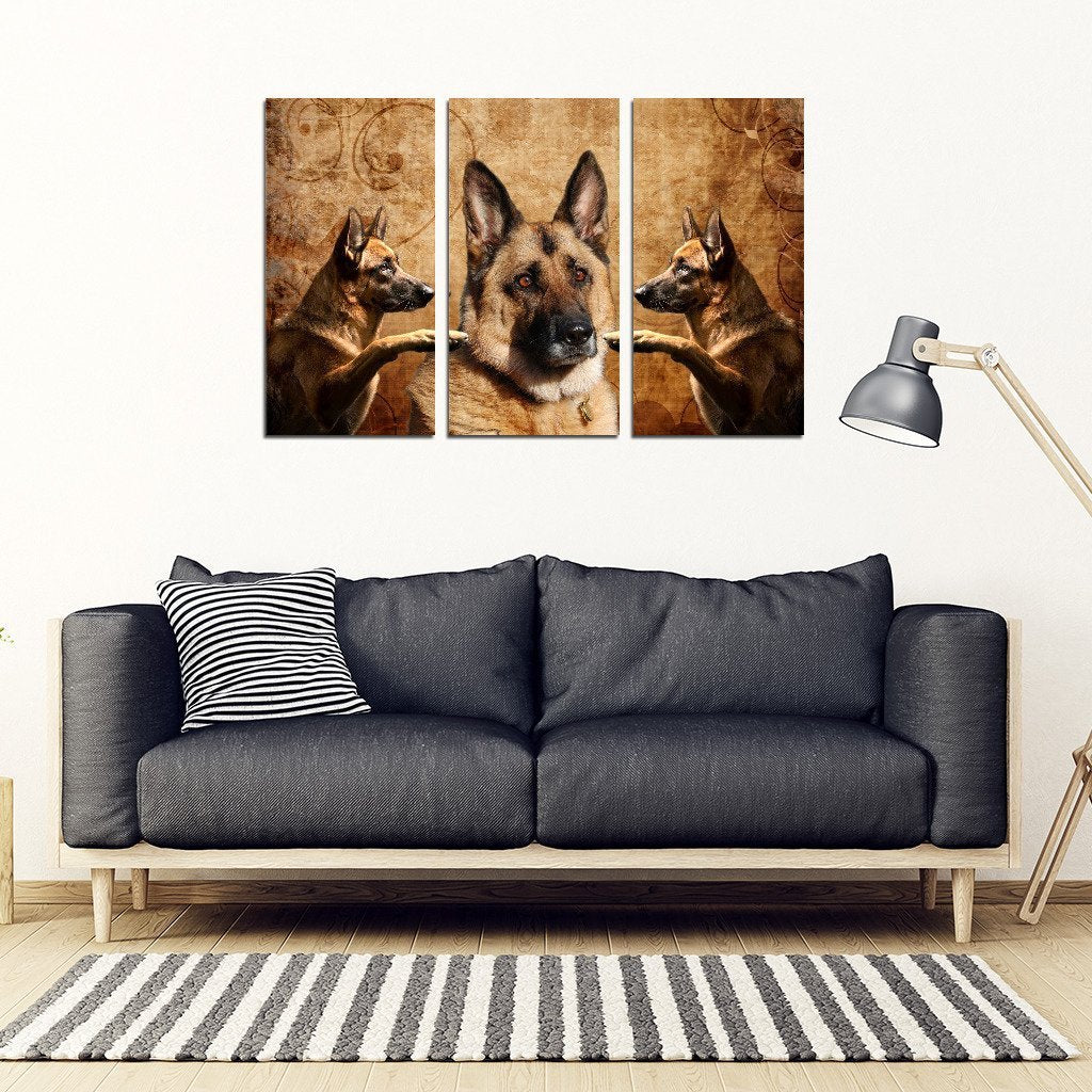 German Shepherd Print- Piece Framed Canvas- Free Shipping