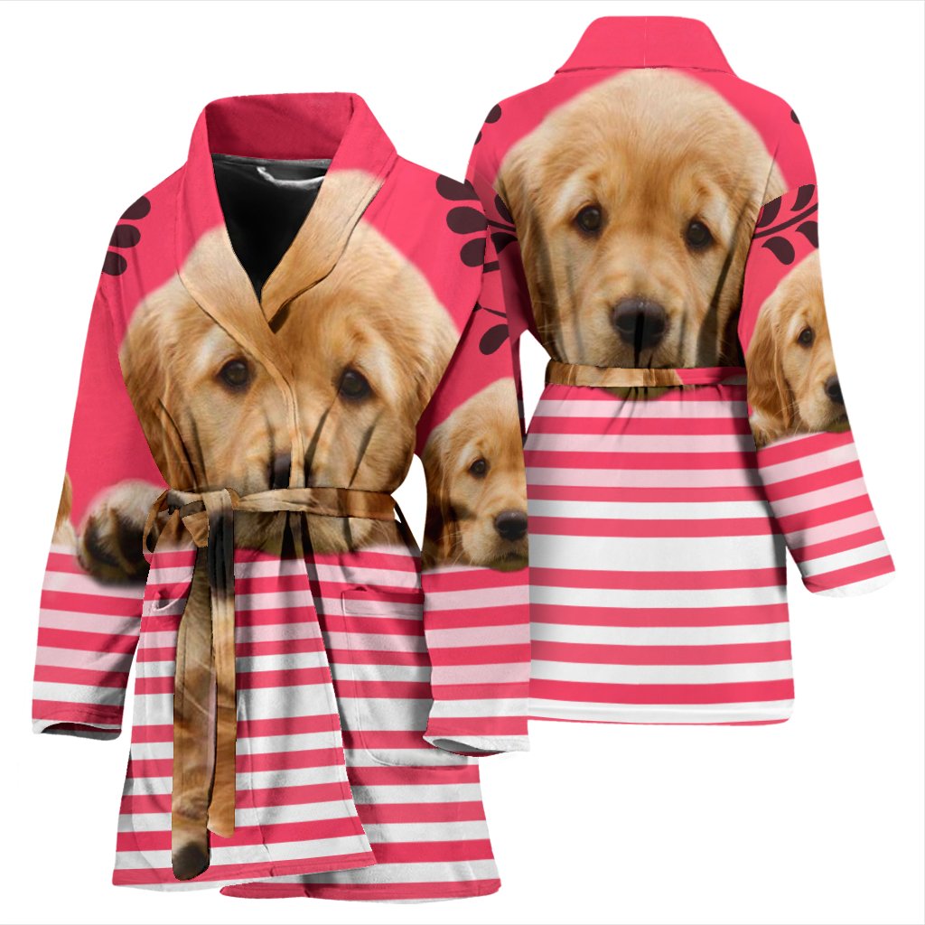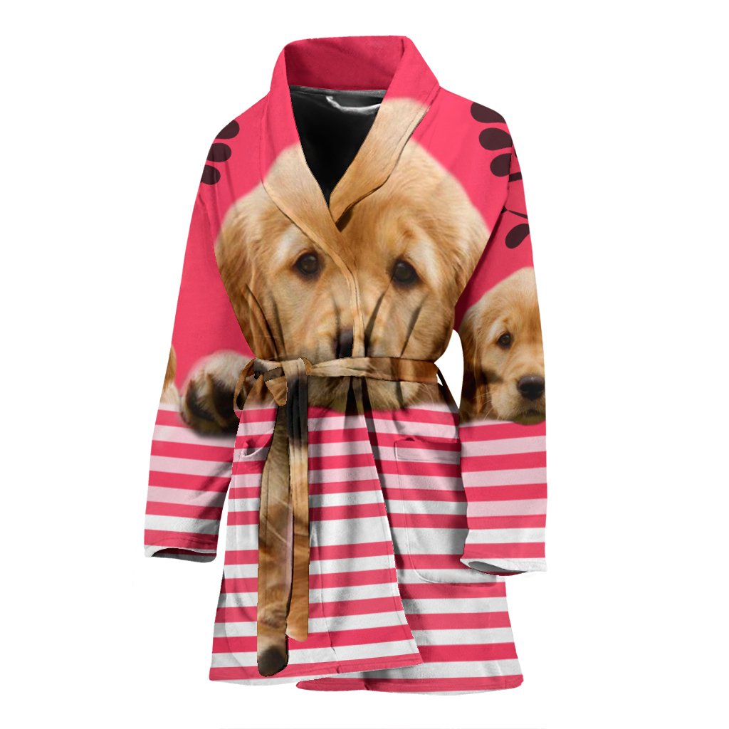 Cute Golden Retriever Dog Print Women's Bath Robe-Free Shipping