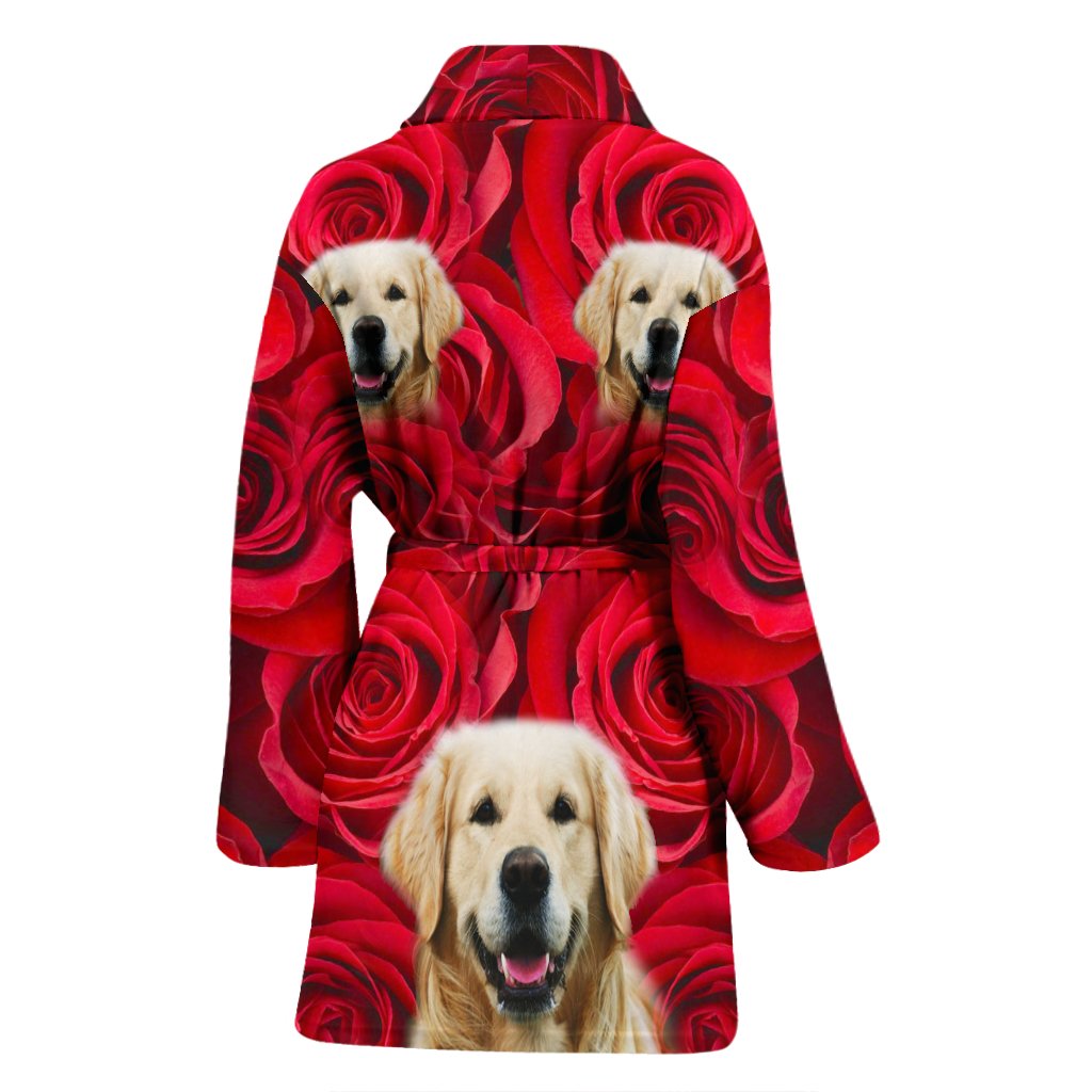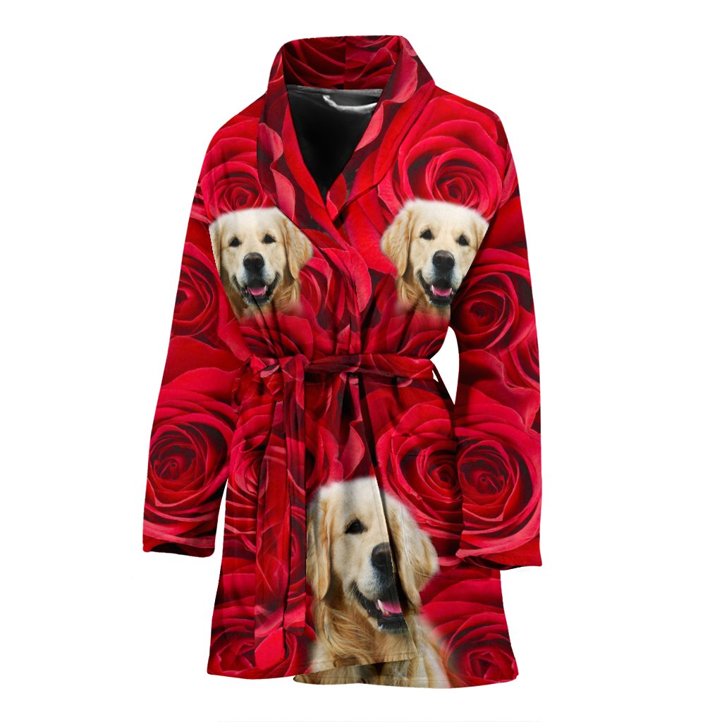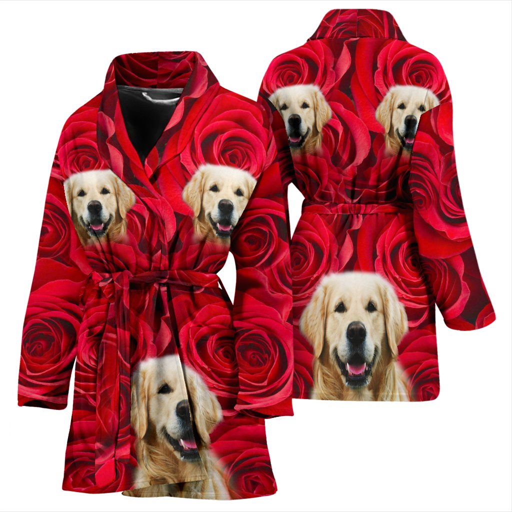 Cute Golden Retriever Print Women's Bath Robe-Free Shipping