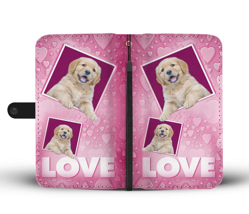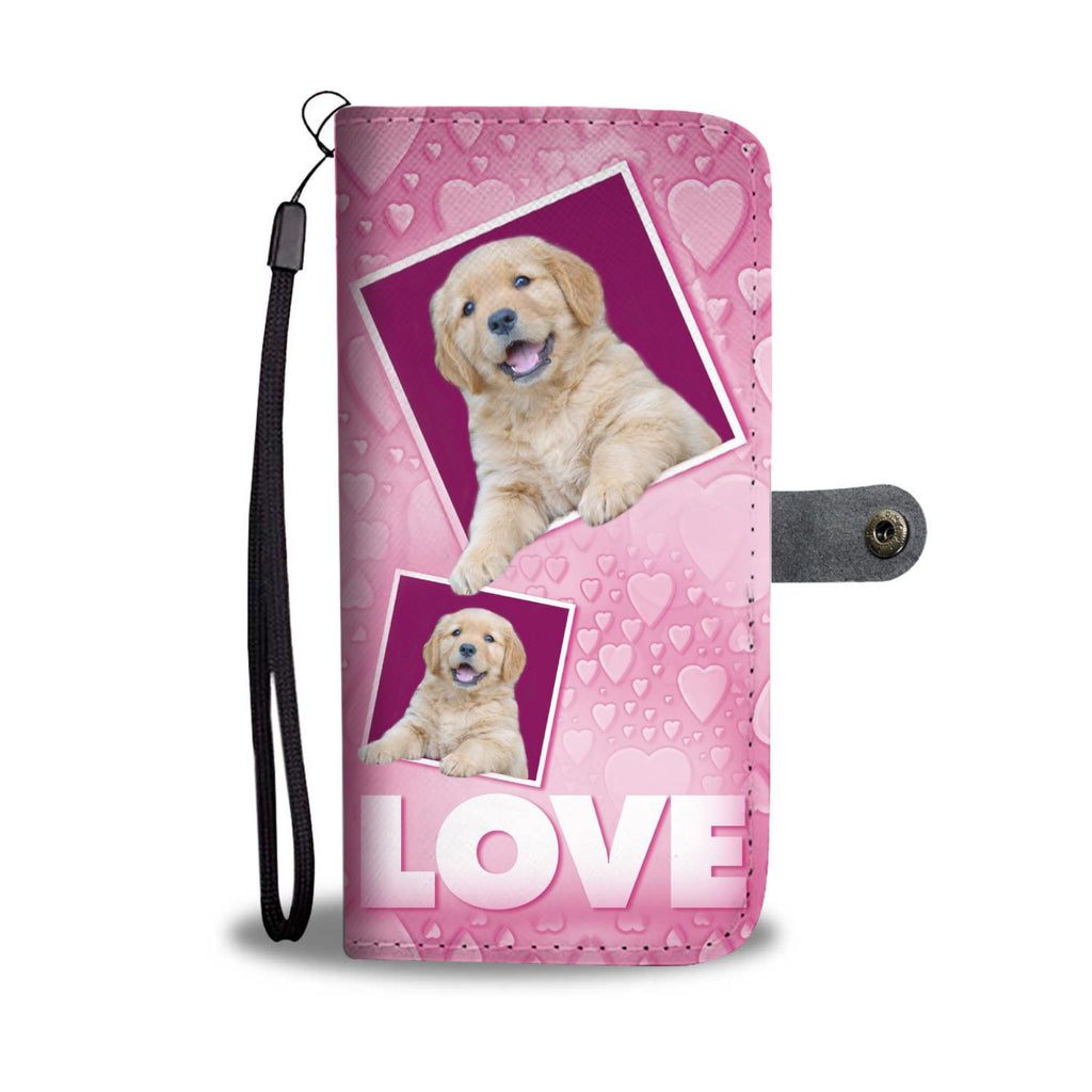 Cute Golden Retriever puppy with Love Print Wallet Case-Free Shipping