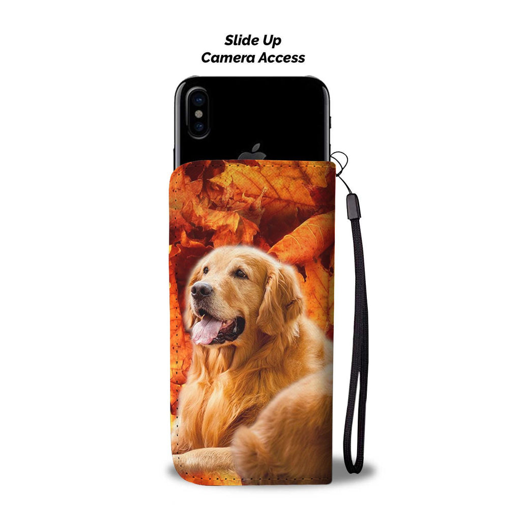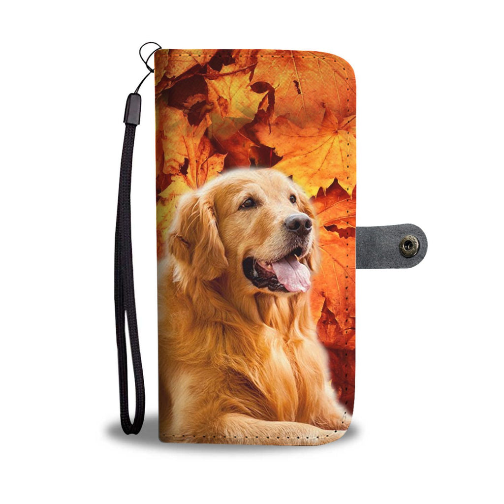 Golden Retriever With leaves Print Wallet Case- Free Shipping