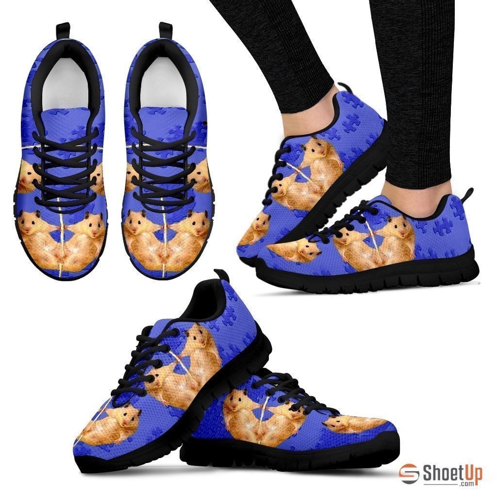 Golden Hamster Print (Black/White) Running Shoes For Women-Free Shipping