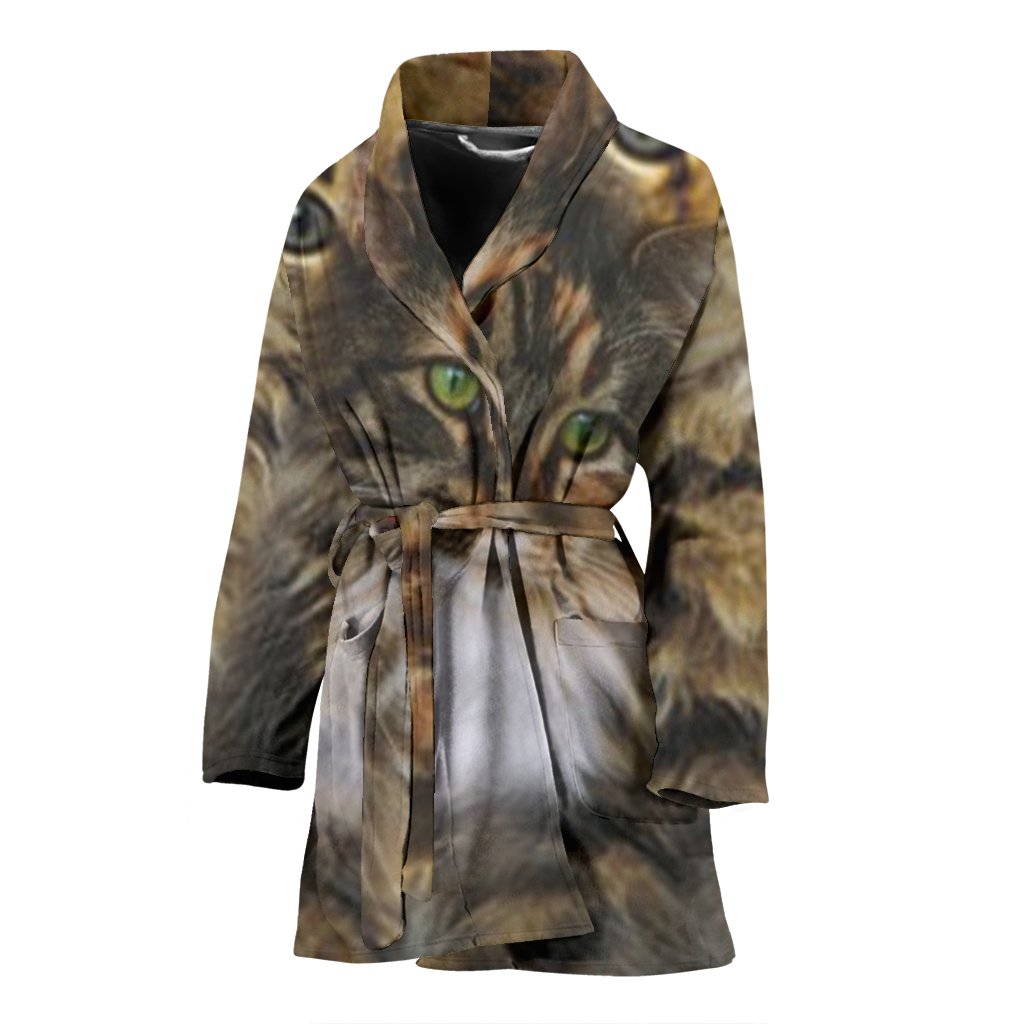 Maine Coon Cat Print Women's Bath Robe-Free Shipping
