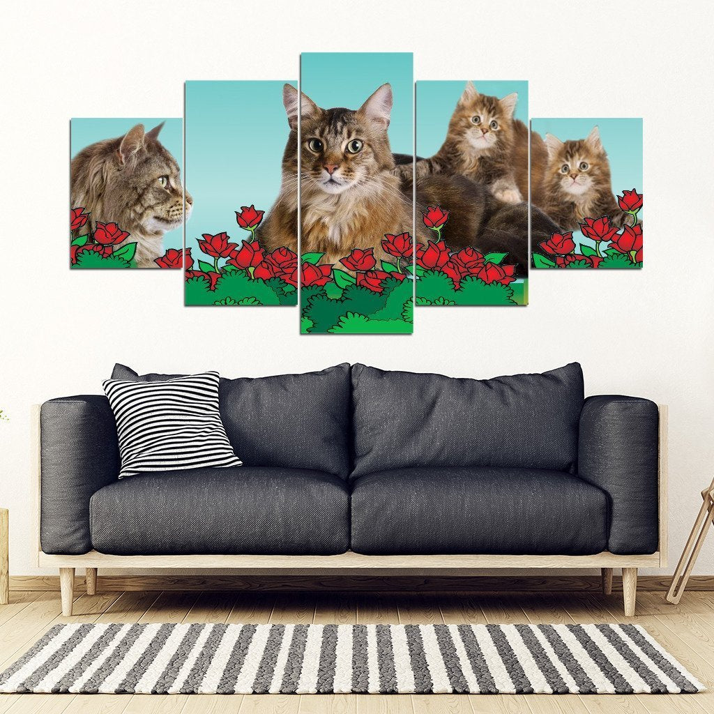 Maine Coon Cat2 Print-5 Piece Framed Canvas- Free Shipping