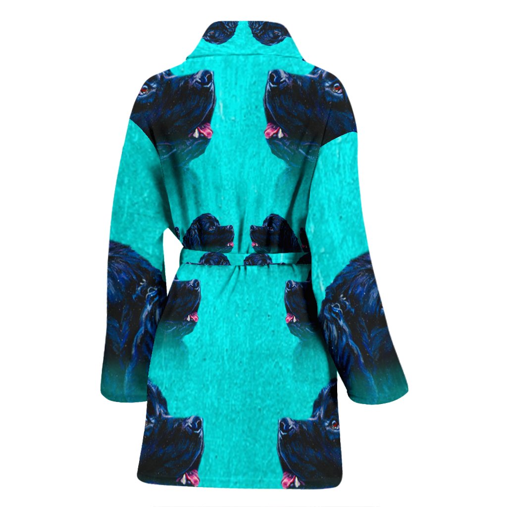 Newfoundland Dog Art Print Women's Bath Robe-Free Shipping