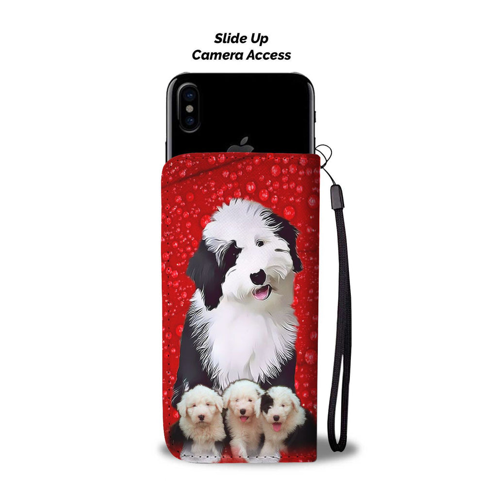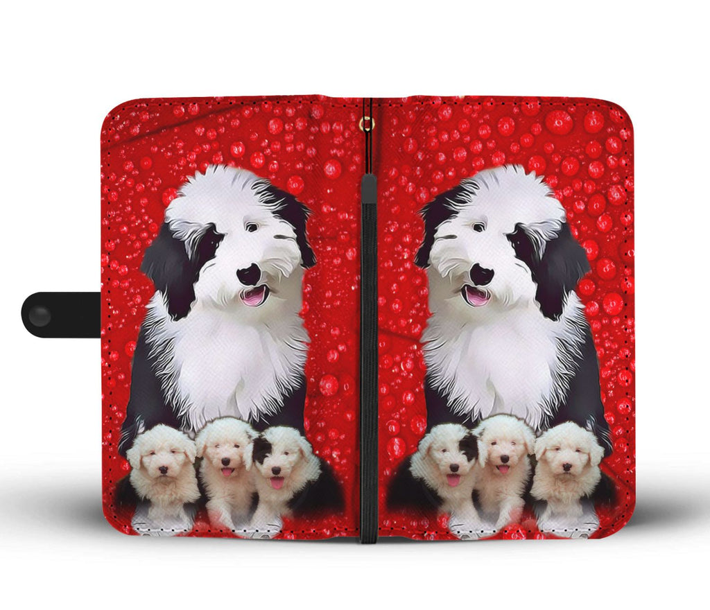 Old English Sheepdog On Red Wallet Case- Free Shipping