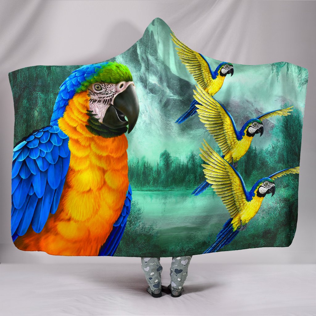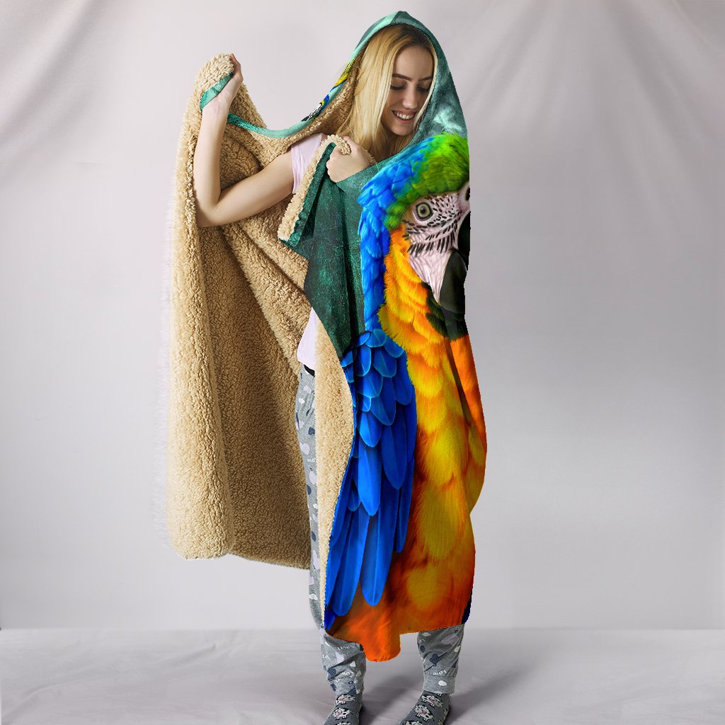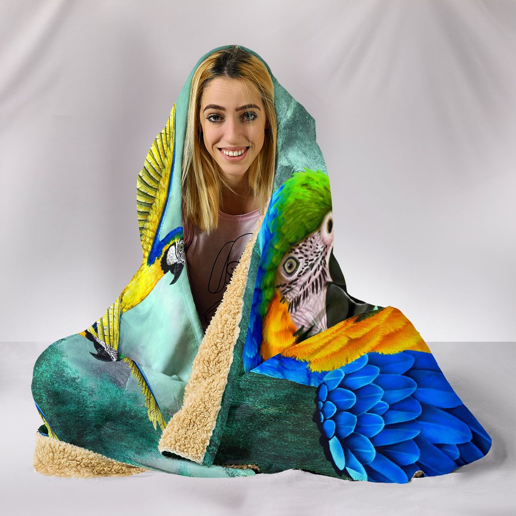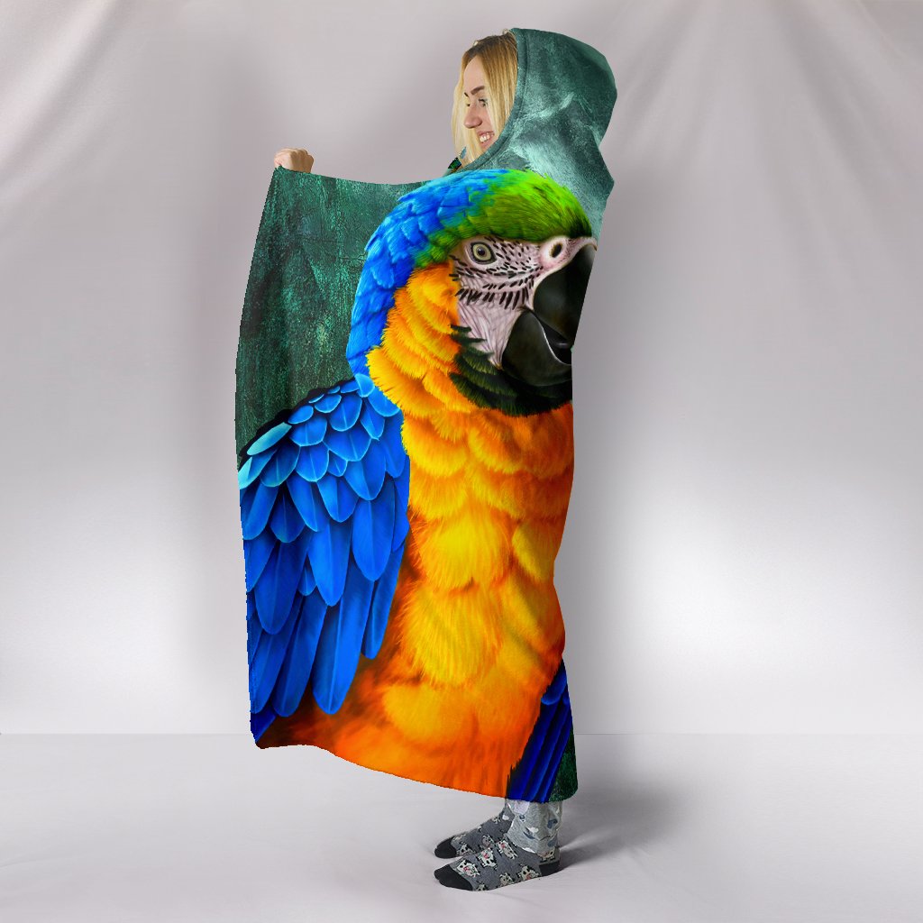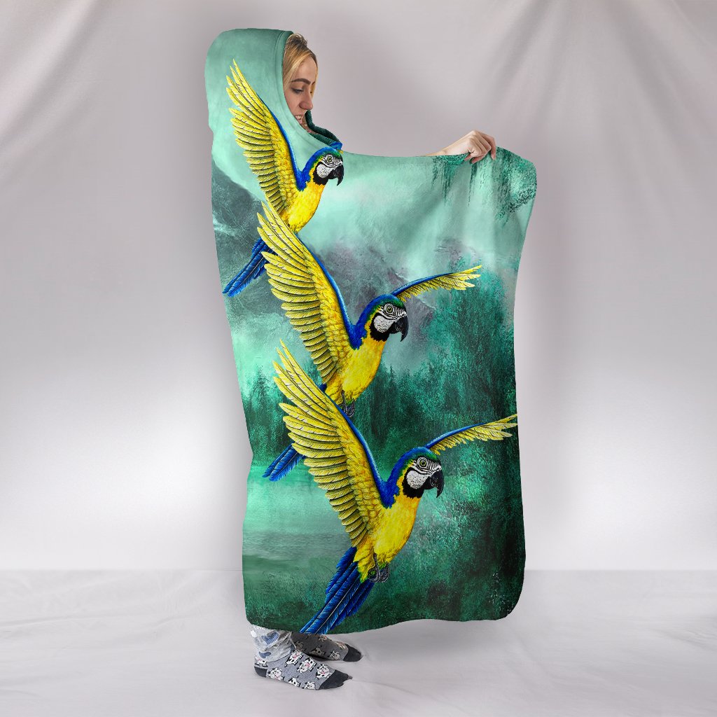 Blue And Yellow Macaw Parrot Print Hooded Blanket
