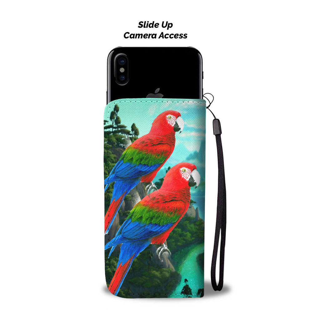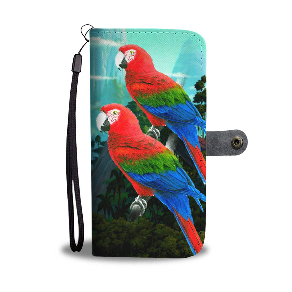 Amazing Red and Green Macaw Parrot Print Wallet Case-Free Shipping
