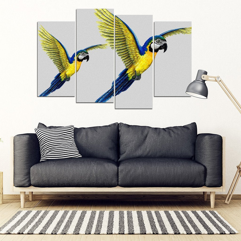 Blue And Yellow Macaw Parrot Print 5 Piece Framed Canvas- Free Shipping