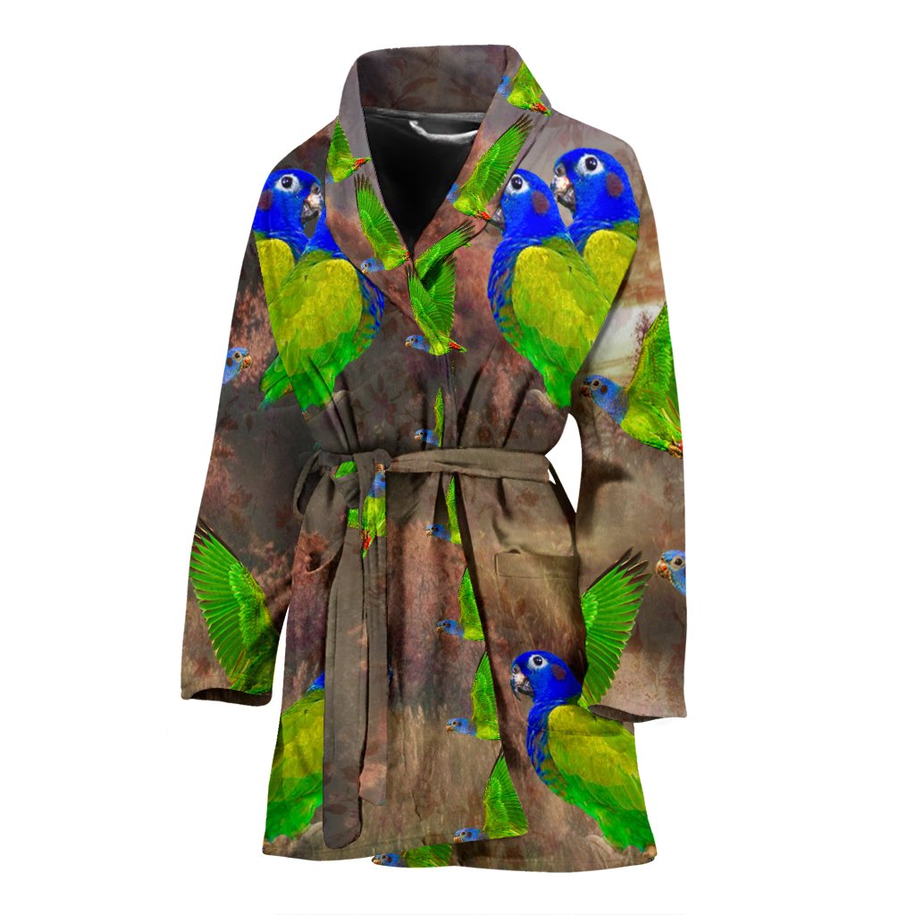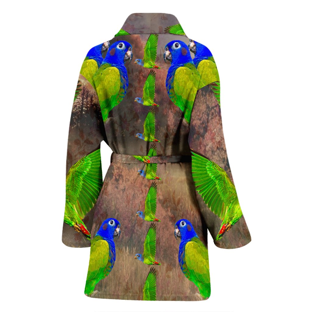 Blue Headed Parrot Art Print Women's Bath Robe-Free Shipping