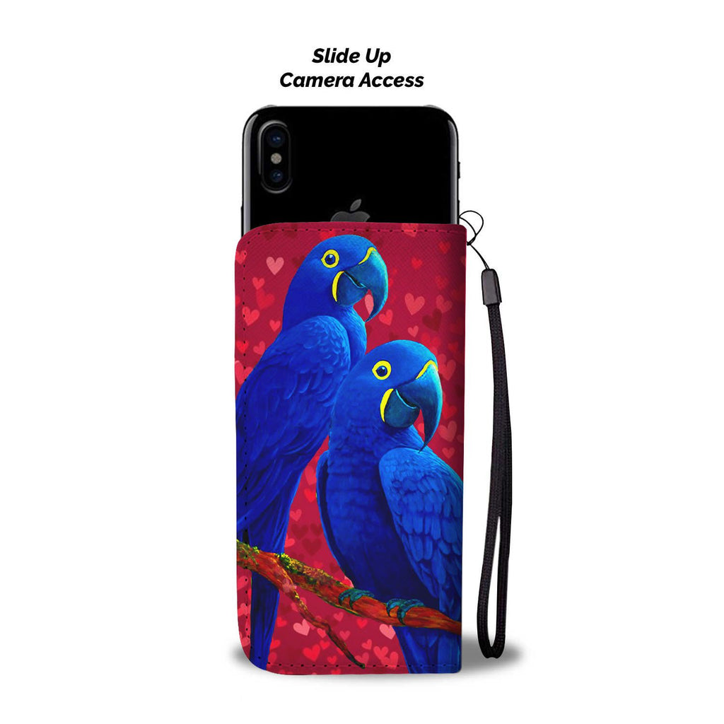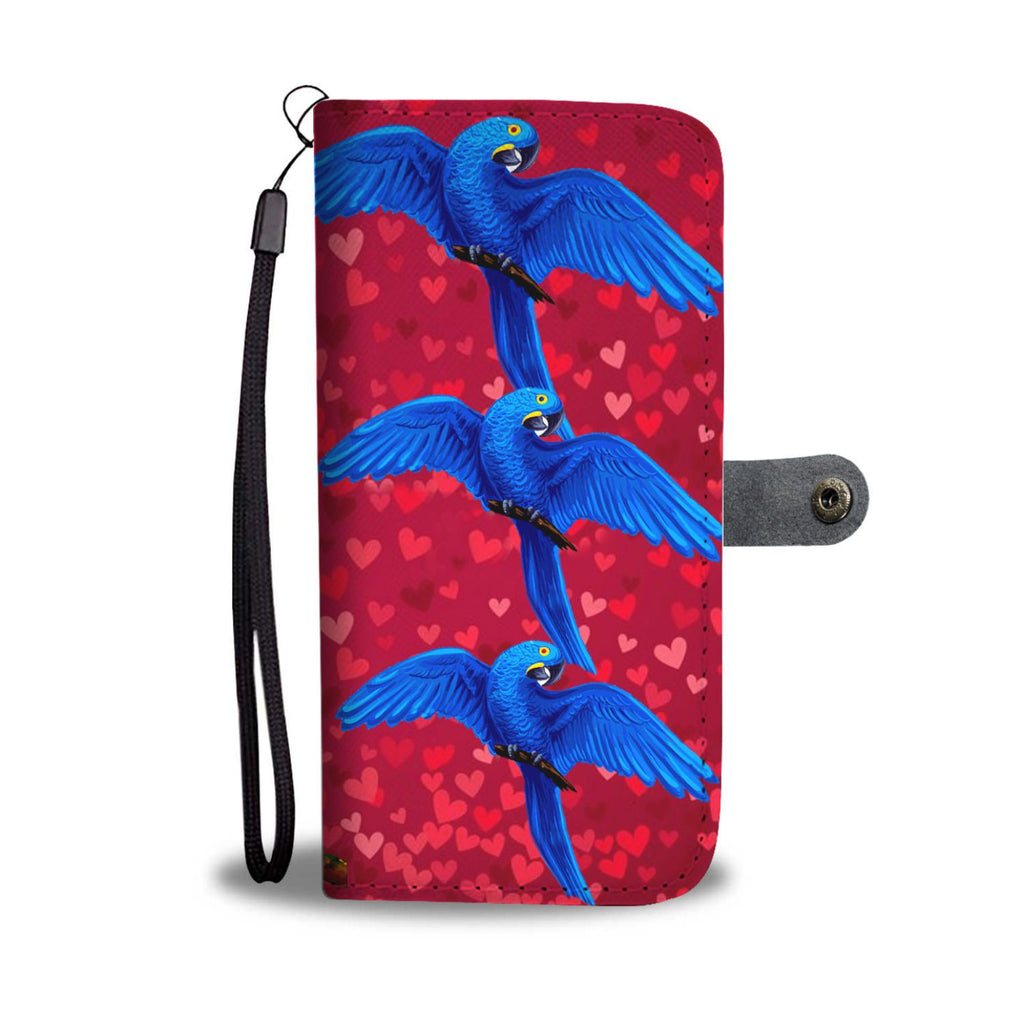 Hyacinth Macaw Parrot On Red Hearts Print Wallet Case-Free Shipping