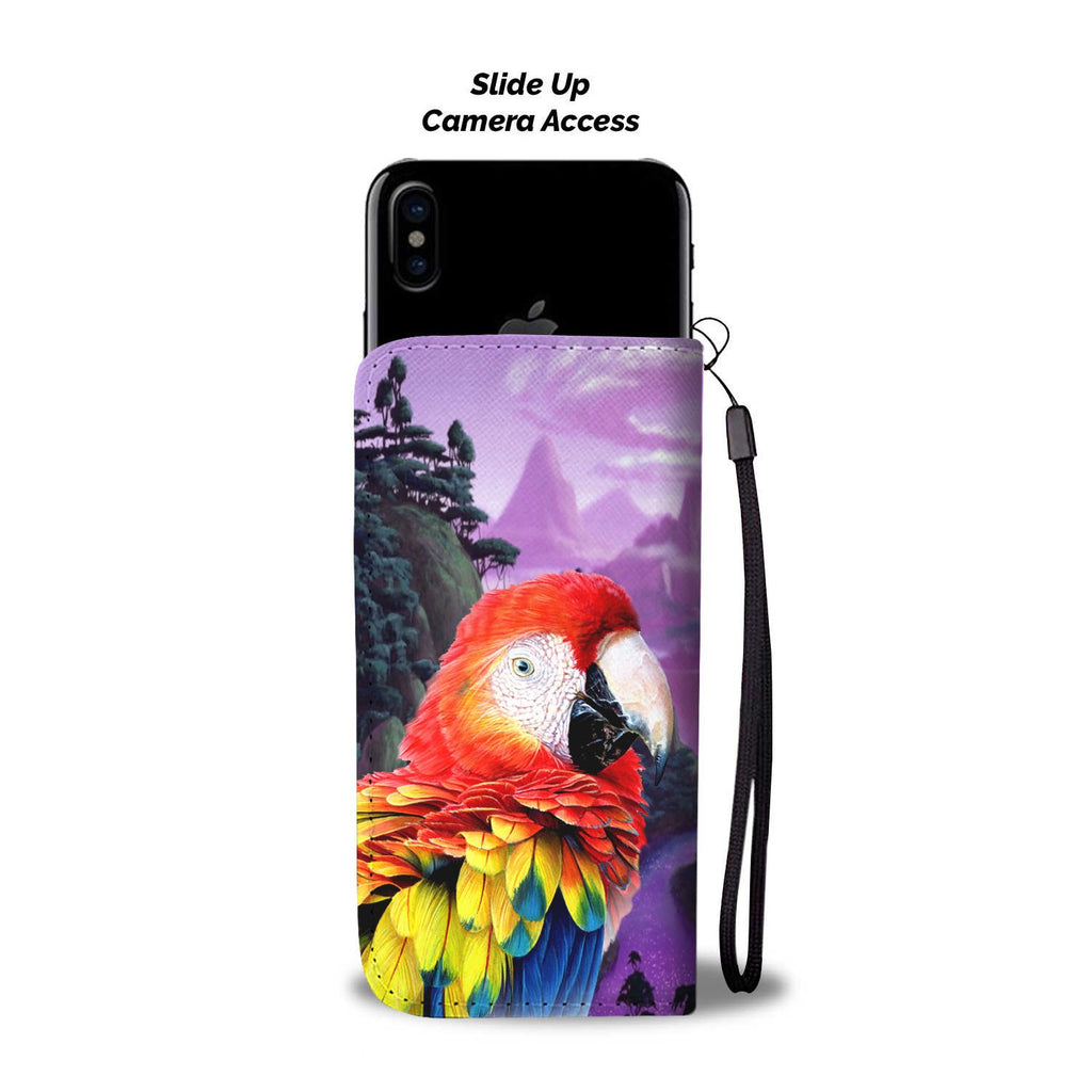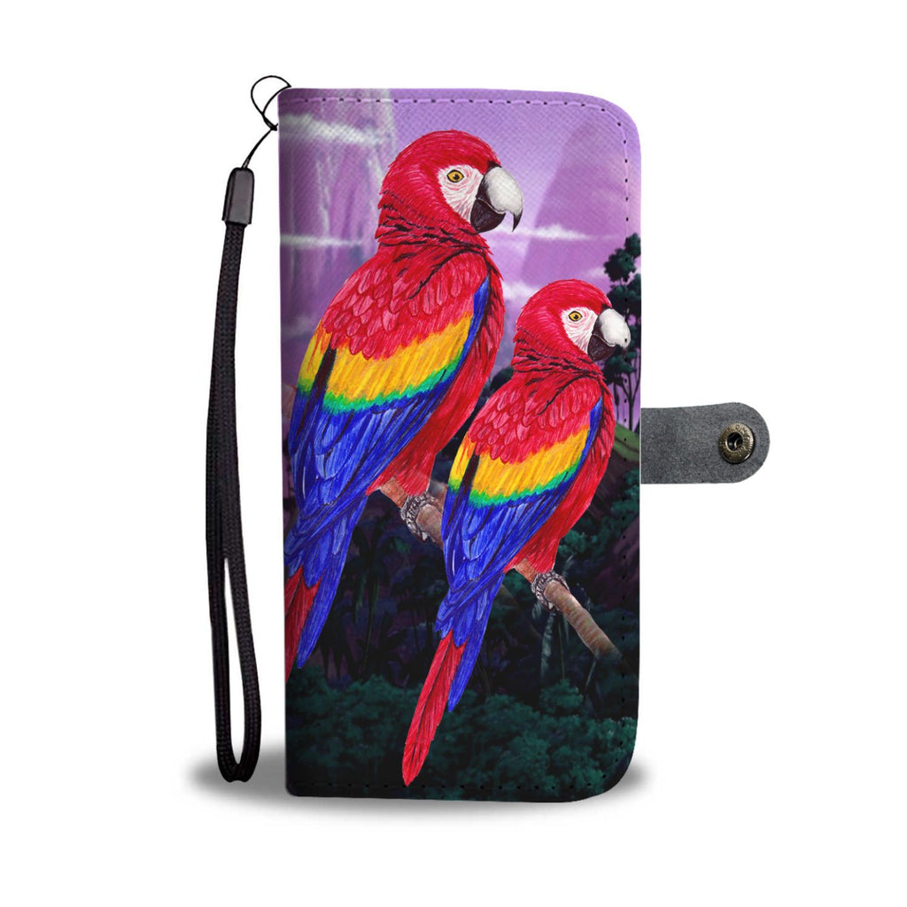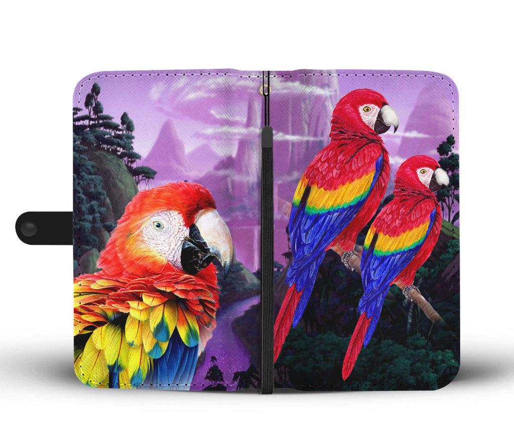 Scarlet Macaw Parrot Print Wallet Case-Free Shipping