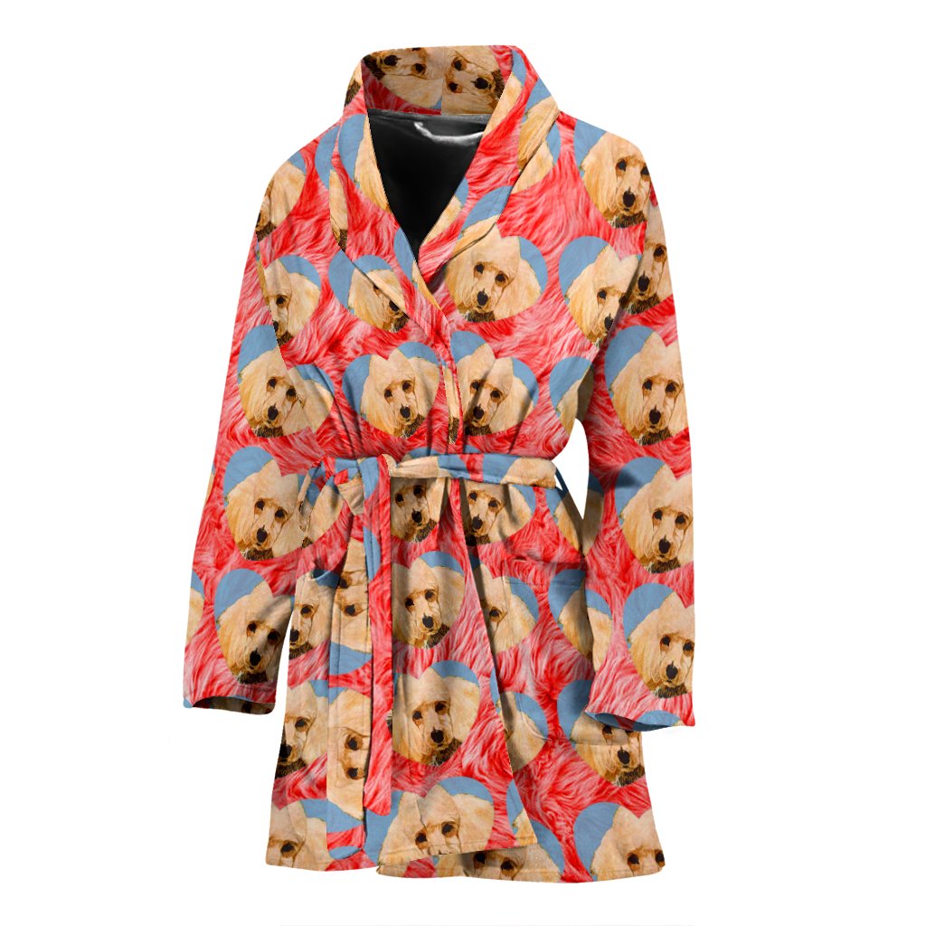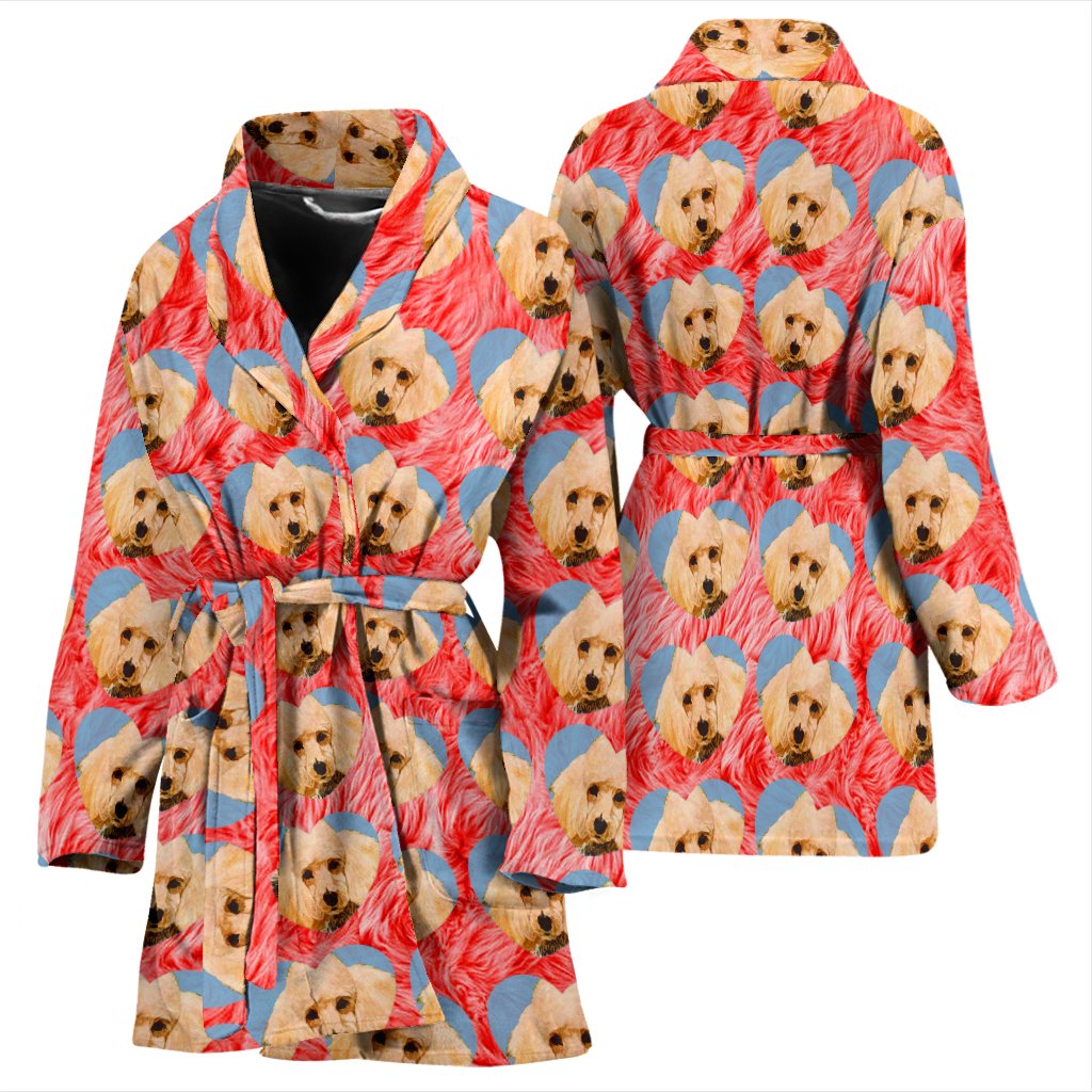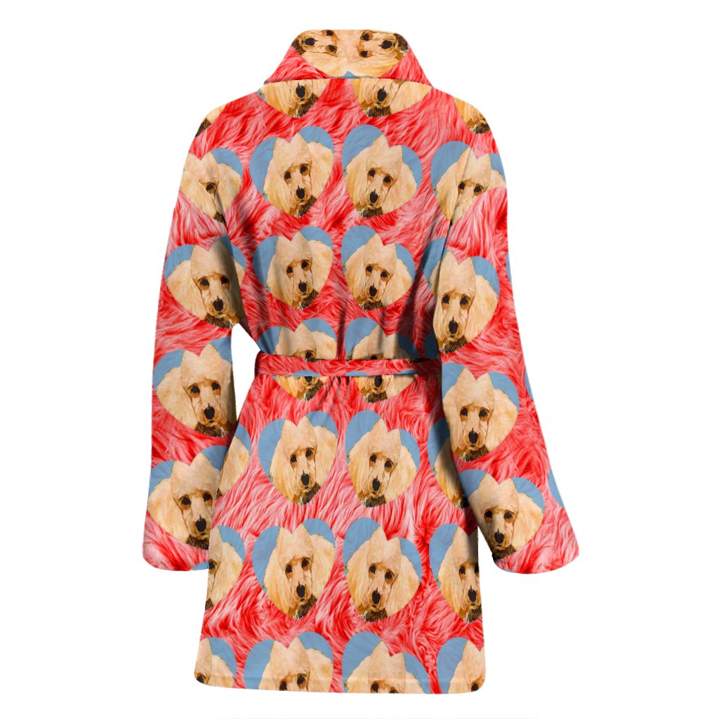 Poodle Dog Heart Pattern Print Women's Bath Robe-Free Shipping