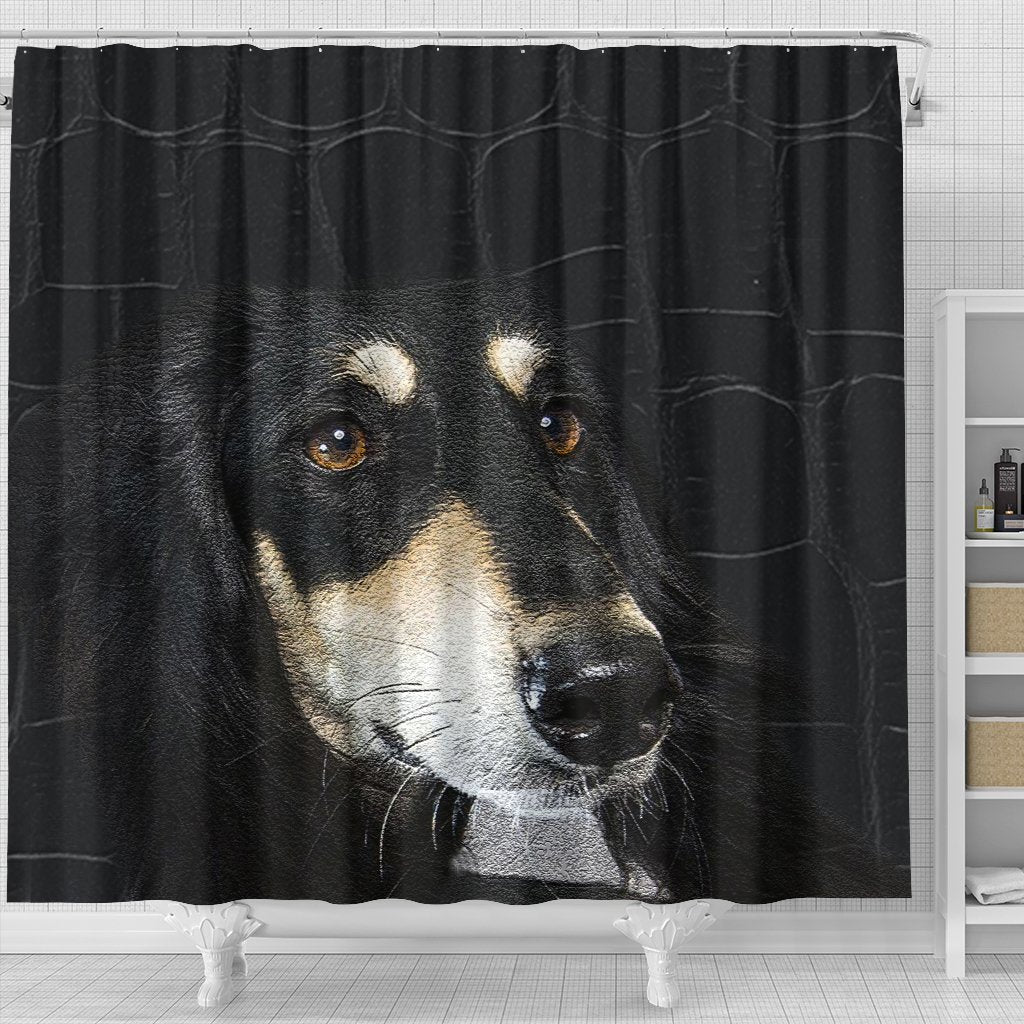 Black Saluki Dog Print Shower Curtain-Free Shipping