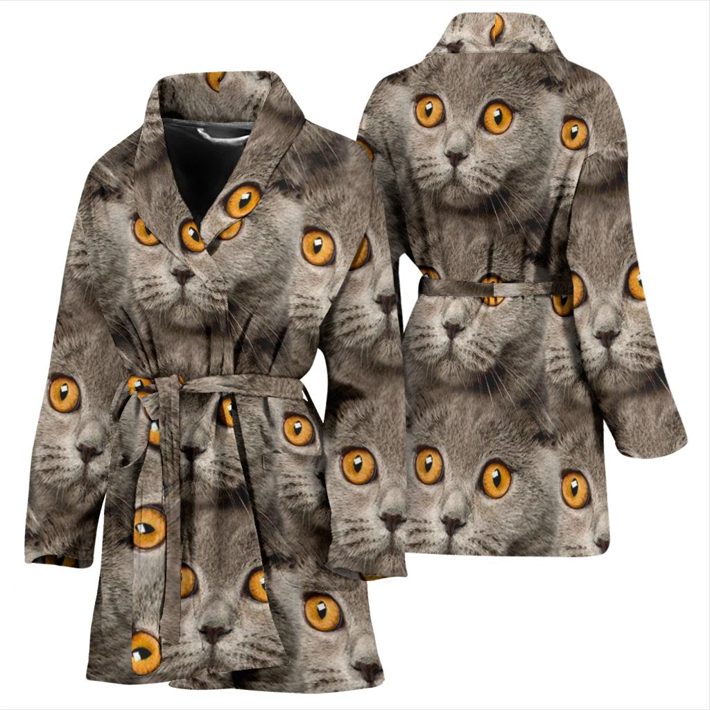 Scottish Fold Cat Print Women's Bath Robe-Free Shipping